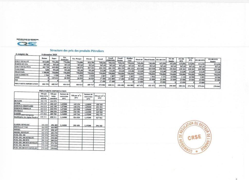 Baisse des prix du carburant : supercarburant à 920 FCFA, gasoil à 680 FCFA