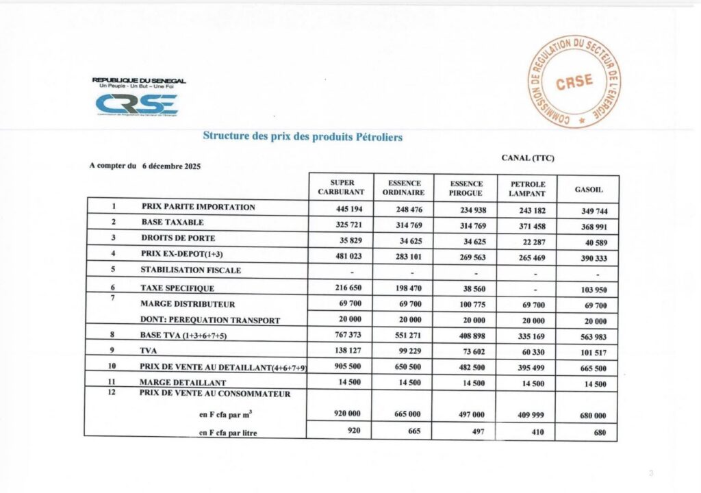 Le prix du carburant baisse à partir de ce soir 18h. Le supercarburant est désormais fixé à 920 FCFA, tandis que le gasoil passe à 680 FCFA. Cette mesure vise à alléger la charge sur les consommateurs et à refléter les ajustements récents du marché pétrolier.