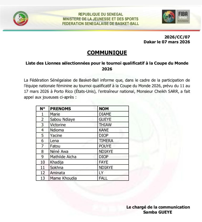 Avant le départ de la délégation, le sélectionneur Cheikh Sarr a procédé à un dernier écrémage de son effectif. Sur les 18 joueuses initialement présélectionnées, le technicien sénégalais a finalement retenu un groupe de 13 basketteuses. Cette décision intervient au lendemain du match amical disputé contre les cadets de l’école de basket Ousmane Diallo.