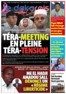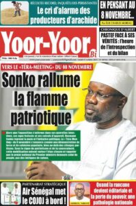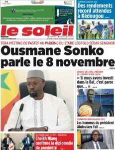 Ousmane Sonko parle le 8 novembre. Le Premier ministre prévoit un grand Tera Meeting à Dakar, présenté comme un moment d’explication et de communion avec les Sénégalais. Le journal évoque une communication gouvernementale axée sur les « résultats visibles » du plan d’action.