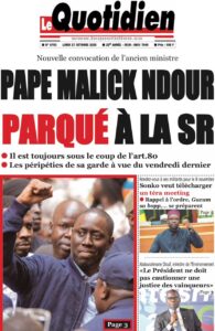 « Pape Malick Ndour parqué à la SR » — Le quotidien se penche sur les suites judiciaires visant l’ancien ministre, convoqué et entendu par les enquêteurs de la Section de Recherches.
