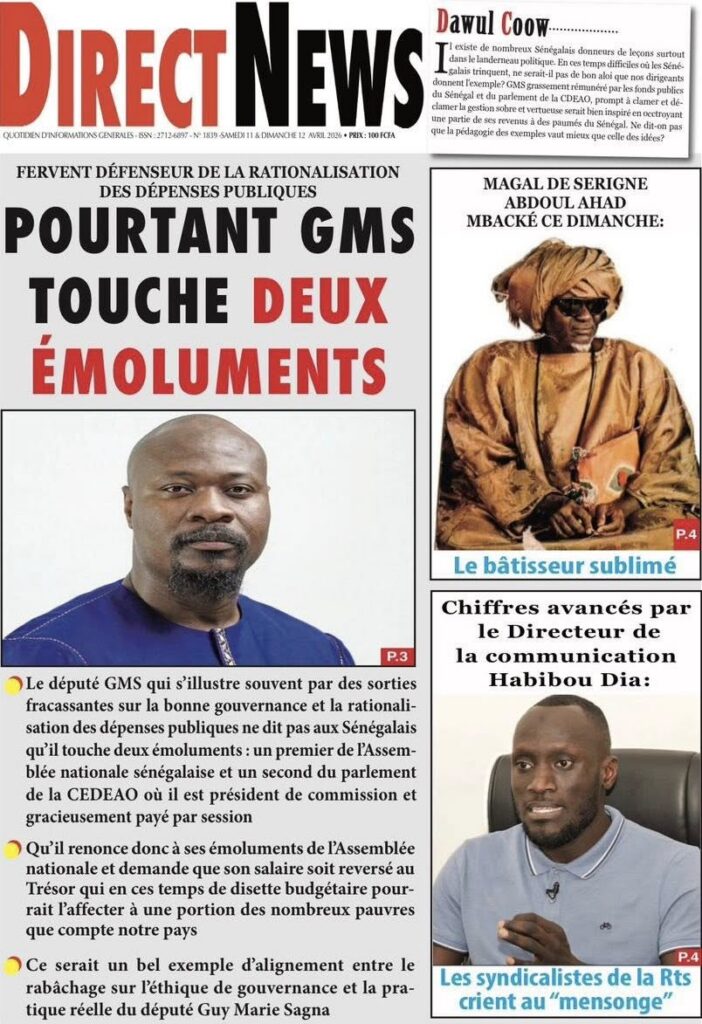 Une des journaux du samedi 11 Avril 2026