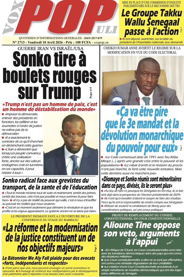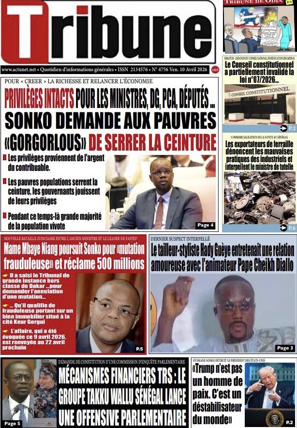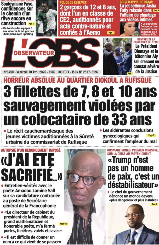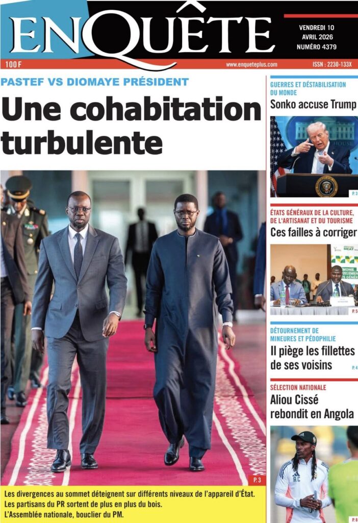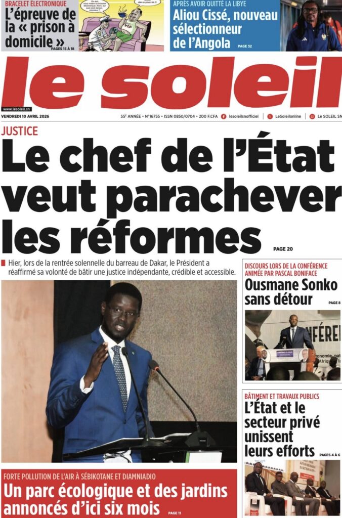 Une des journaux du vendredi 10 Avril 2026