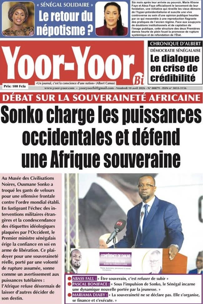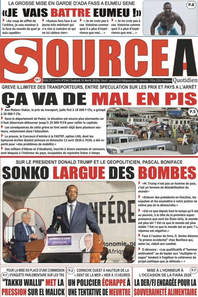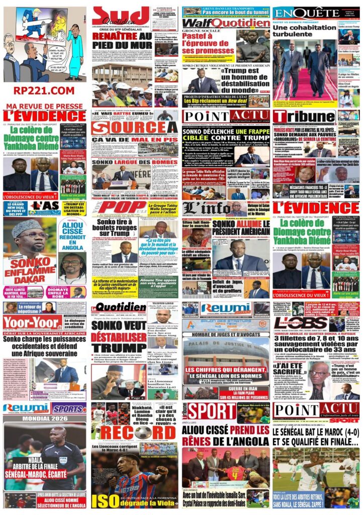 La presse sénégalaise de ce vendredi est dominée par le discours retentissant du Premier ministre Ousmane Sonko au Musée des Civilisations noires, où il a violemment attaqué Donald Trump et défendu une vision souverainiste de l’Afrique. En toile de fond : la grève des transporteurs qui empire et fait monter les prix, la cohabitation turbulente entre Pastef et la coalition Diomaye Président, la crise du BTP et plusieurs faits divers graves. En sport, les Lionceaux U15 écrasent le Maroc 4-0, Aliou Cissé devient sélectionneur de l’Angola, et Ismaïla Sarr brille en Conférence League.
