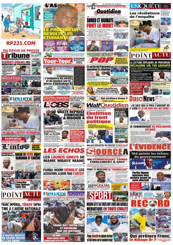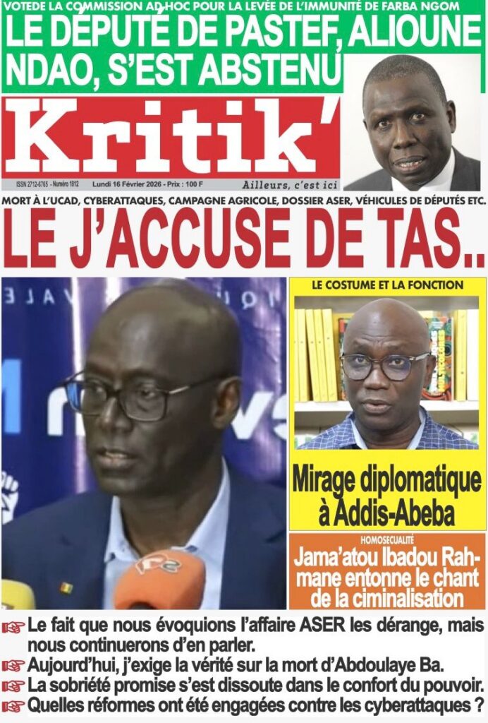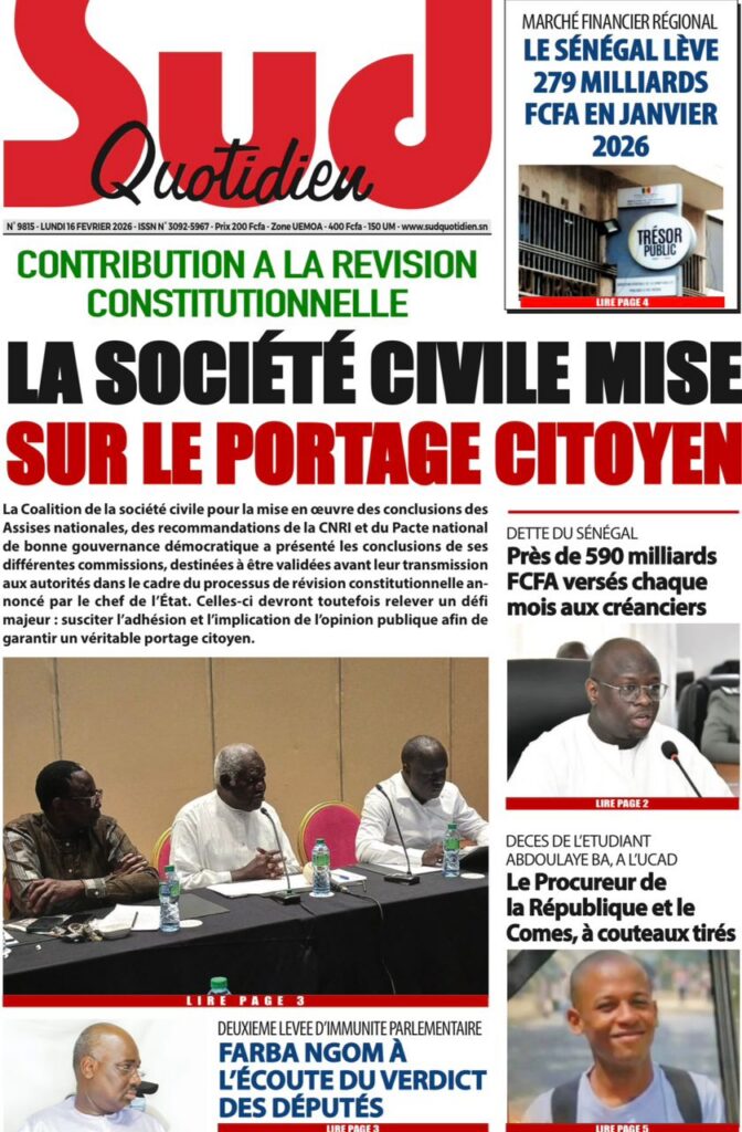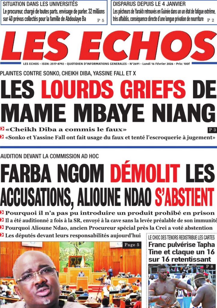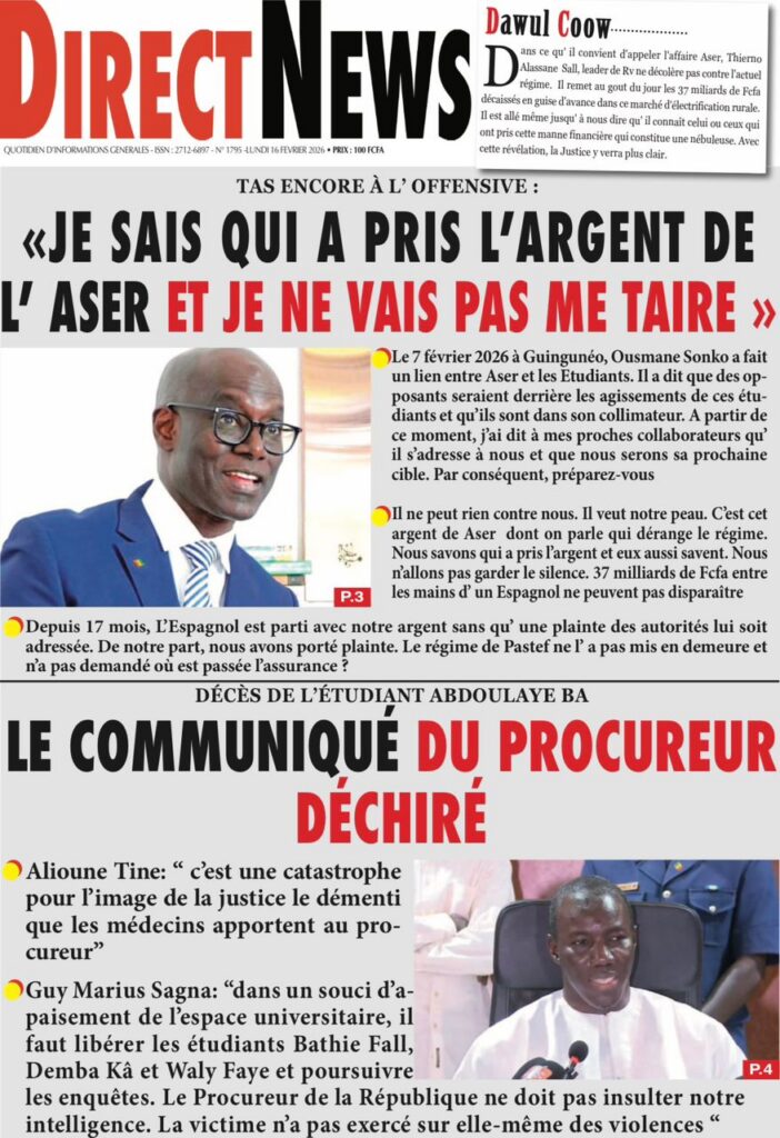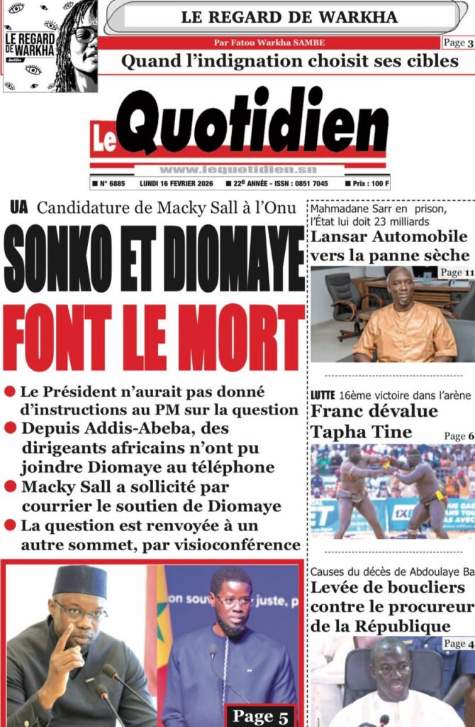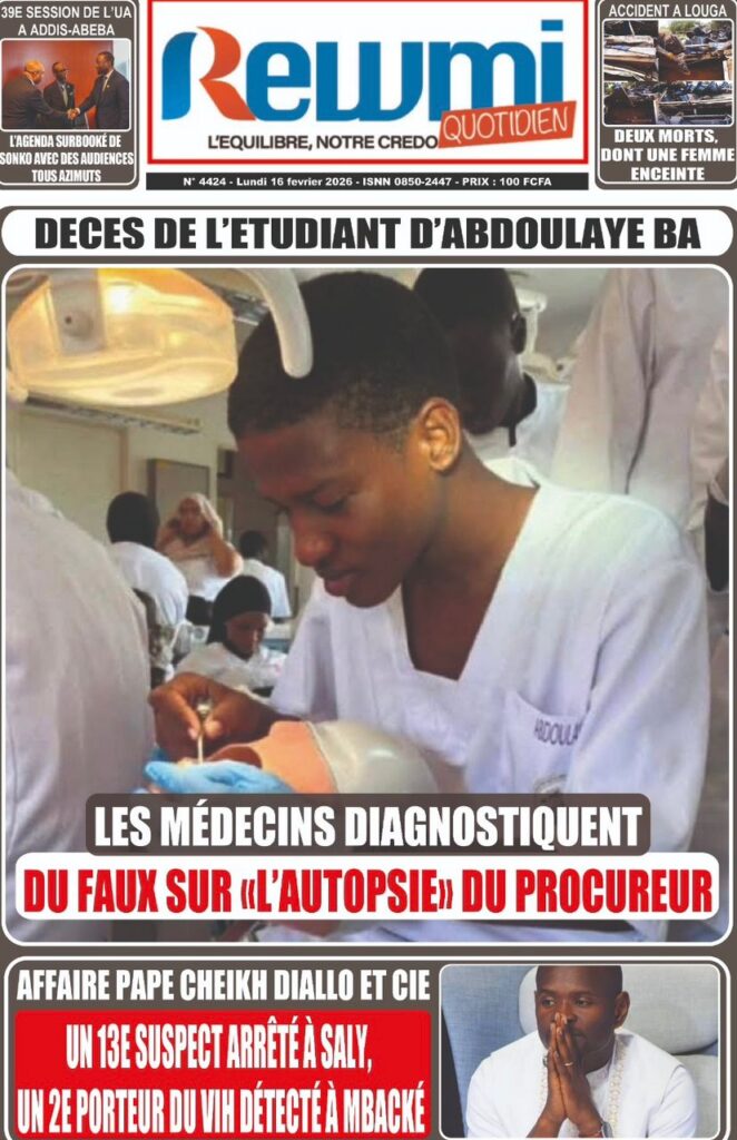 L’actualité sénégalaise de ce lundi 16 février 2026 est monopolisée par l’affaire Abdoulaye Ba qui continue de secouer le pays. Entre un Procureur dont le communiqué suscite l’indignation, des médecins qui dénoncent une autopsie « cinglante », et un gouvernement accusé de fuir ses responsabilités, la crise universitaire atteint son paroxysme. Par ailleurs, la lutte sénégalaise célèbre Franc, invincible avec 16 victoires en 16 combats, et le football livre ses derniers verdicts avec US Gorée champion d’aller.