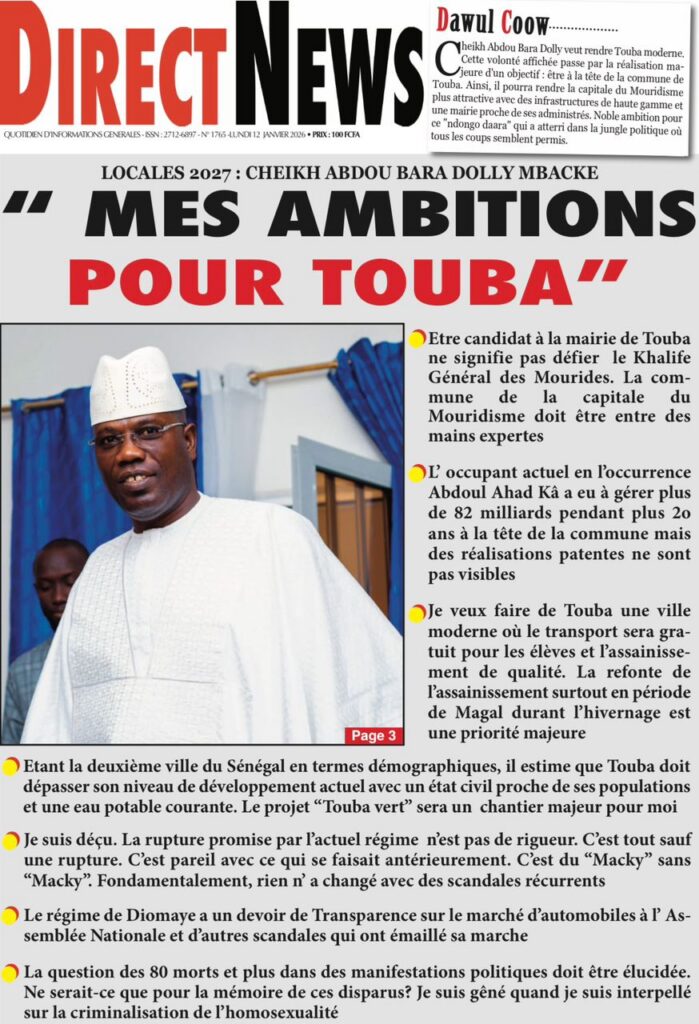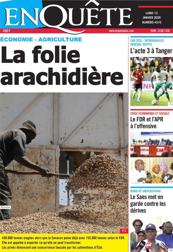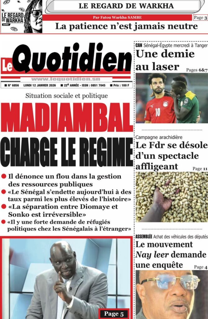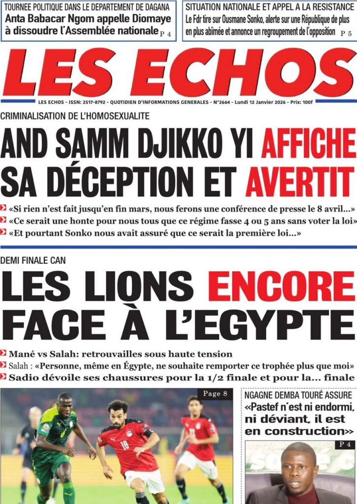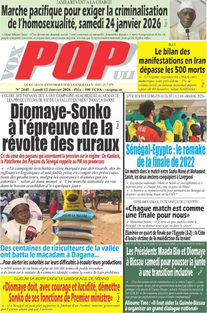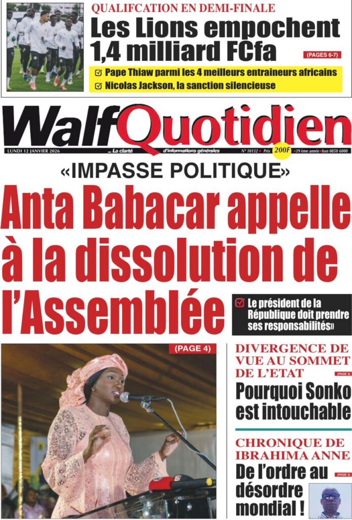 L’actualité sénégalaise de ce lundi 12 janvier 2026 est dominée par une forte actualité politique et sociale, marquée par les débats autour des institutions, la crise dans le monde rural et les interrogations sur la gouvernance économique. En parallèle, le sport continue d’occuper une place centrale avec les Lions engagés dans une phase décisive de la CAN 2025.