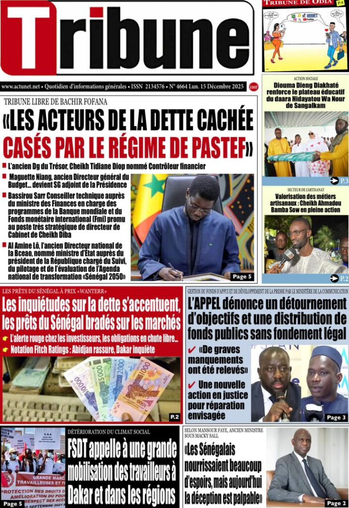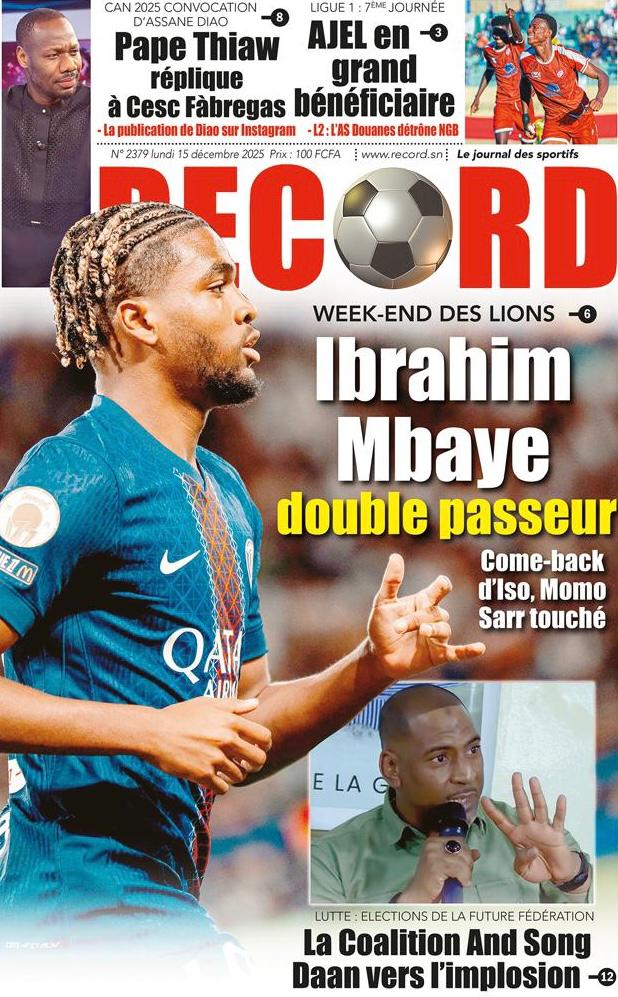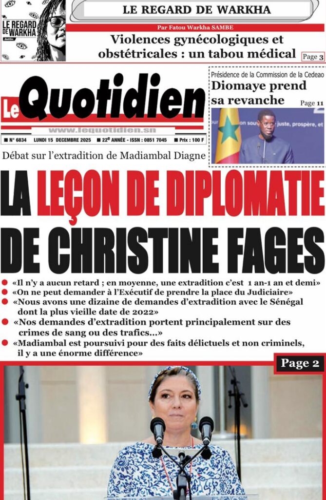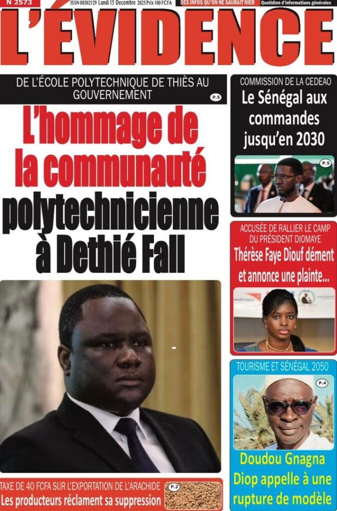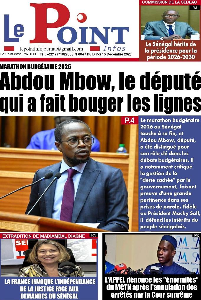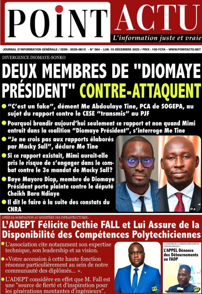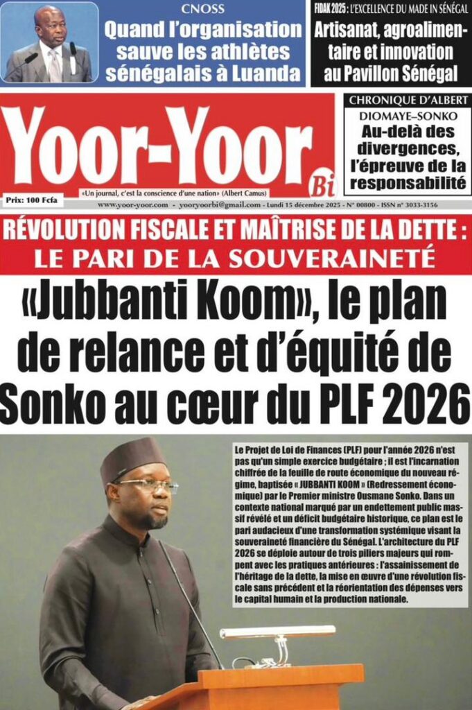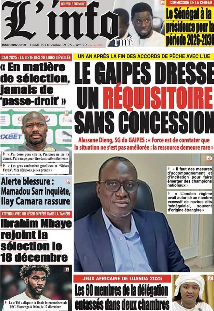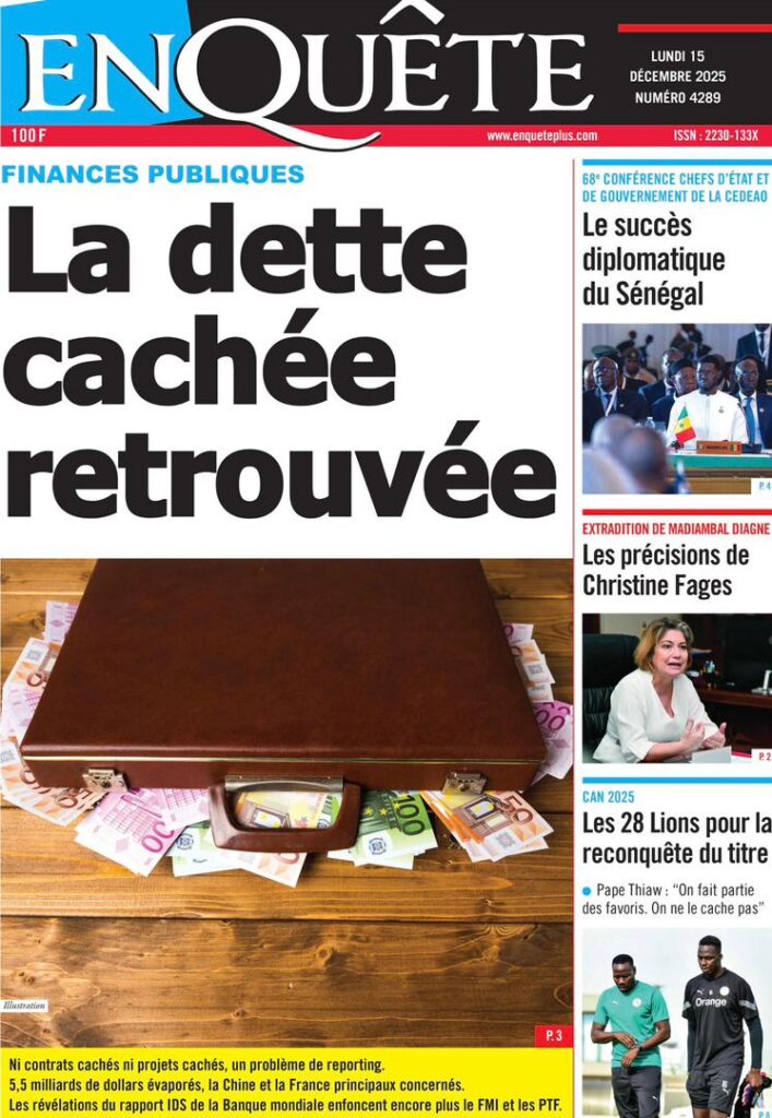 L’actualité sénégalaise de ce lundi 15 décembre 2025 est dominée par les questions de leadership diplomatique, de gestion des finances publiques, de tensions politiques et judiciaires, sans oublier les enjeux sportifs à l’approche des grandes échéances continentales