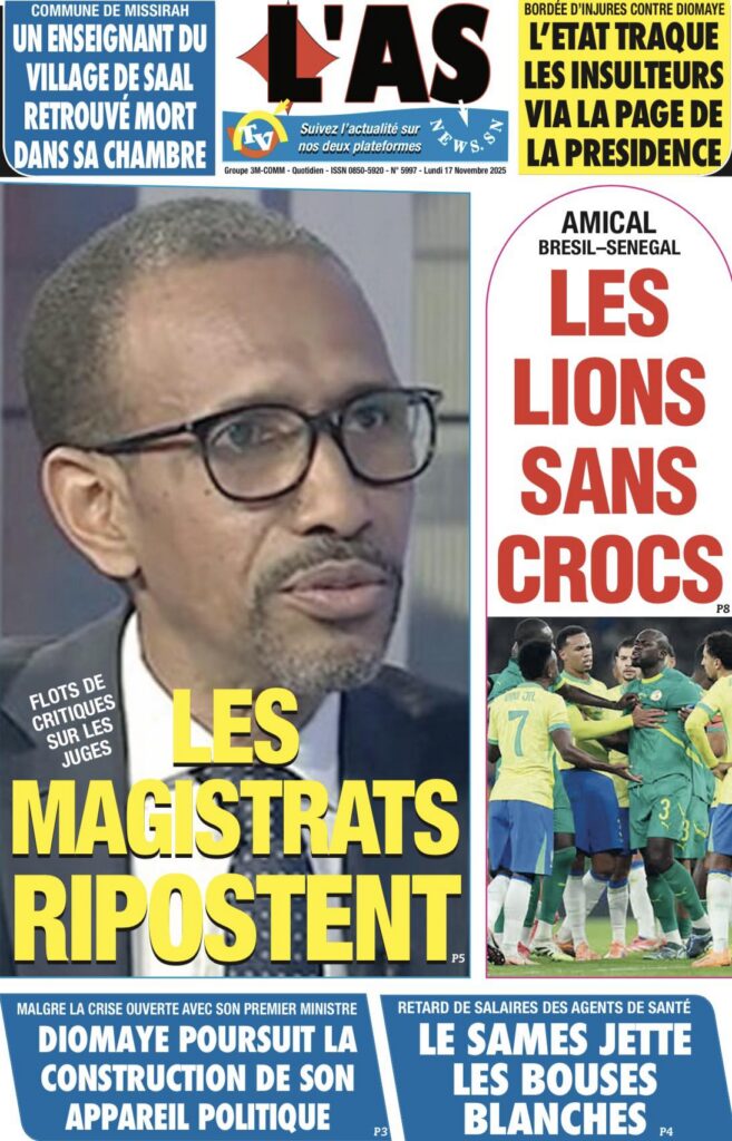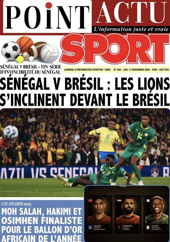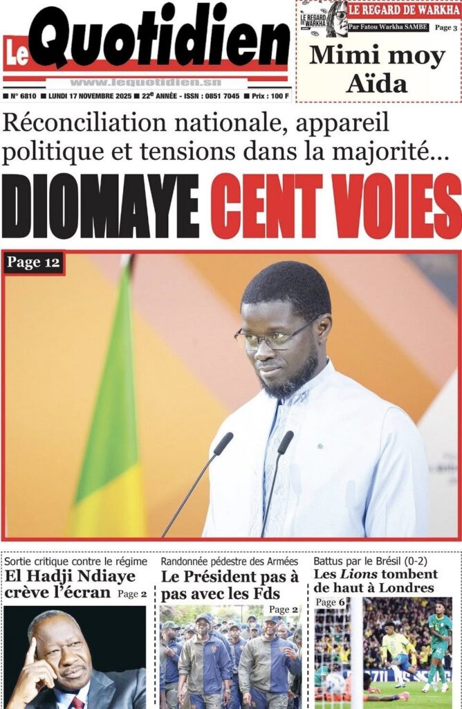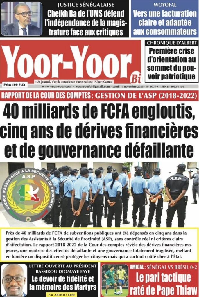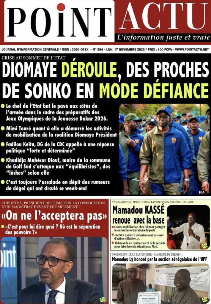 Cette édition du lundi 17 novembre 2025 revient sur un paysage médiatique dominé par la justice, la gouvernance financière, les tensions politiques mais aussi les contre-performances sportives qui interrogent. Tour d’horizon complet des Unes qui rythment l’actualité nationale.