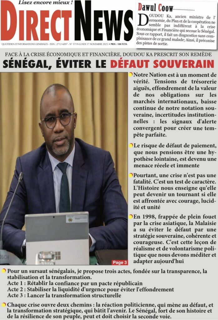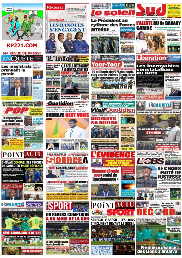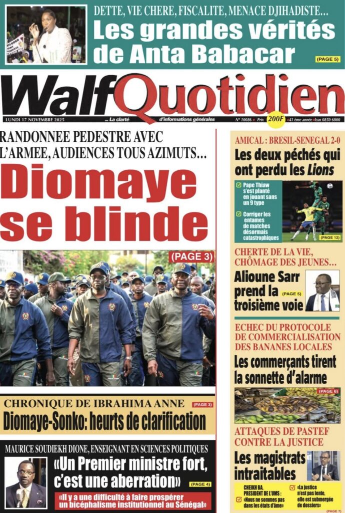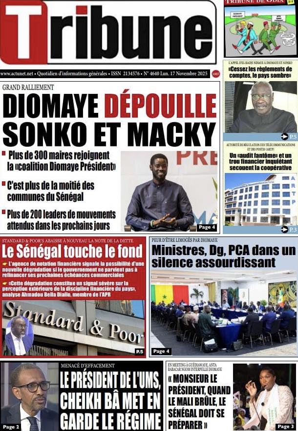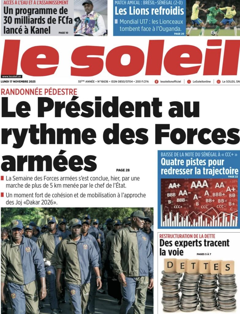Cette édition du lundi 17 novembre 2025 revient sur un paysage médiatique dominé par la justice, la gouvernance financière, les tensions politiques mais aussi les contre-performances sportives qui interrogent. Tour d’horizon complet des Unes qui rythment l’actualité nationale.