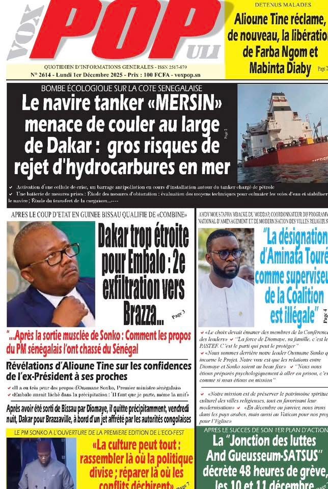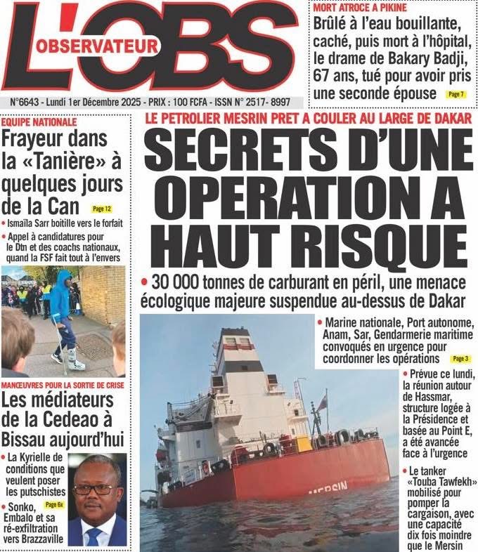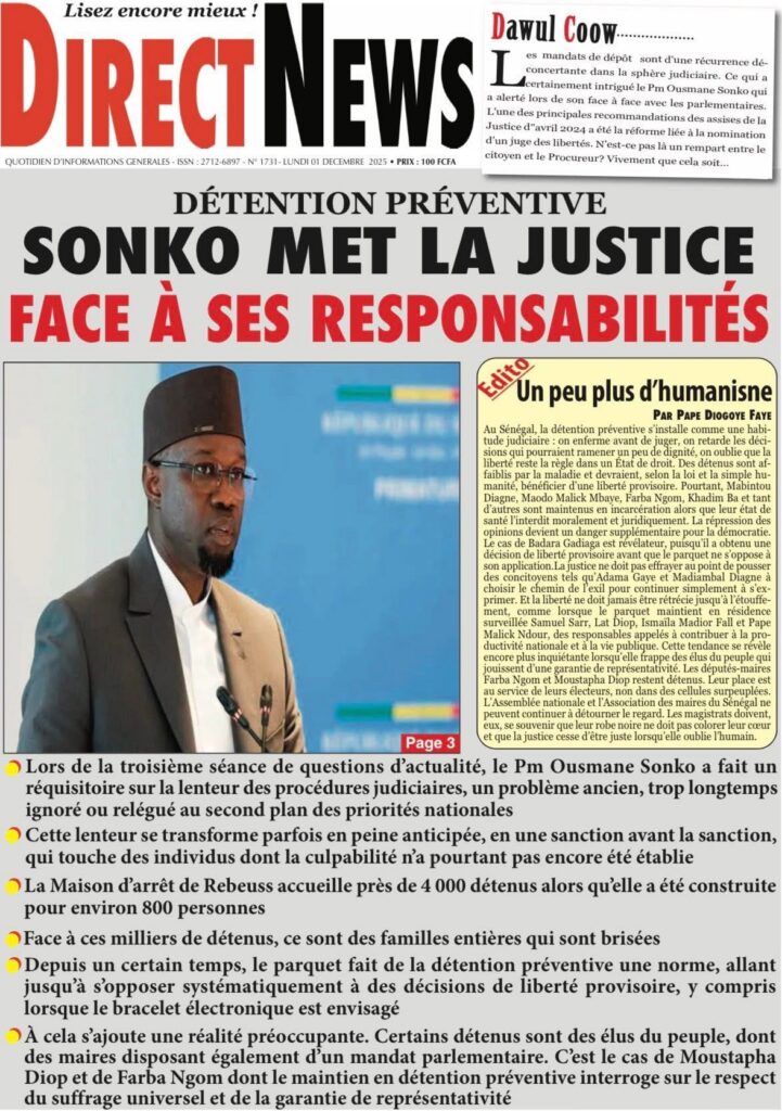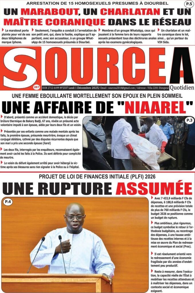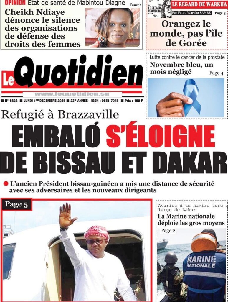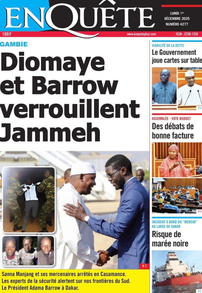 En ce lundi 1er décembre 2025, la presse sénégalaise ouvre le dernier mois de l’année avec une actualité dense : politique, justice, tensions diplomatiques, révélations sécuritaires, et inquiétudes sportives rythment les manchettes. Voici l’essentiel à retenir.