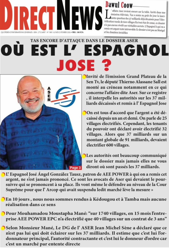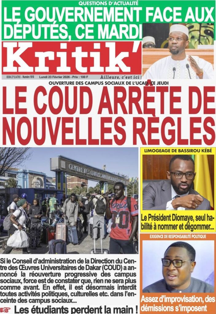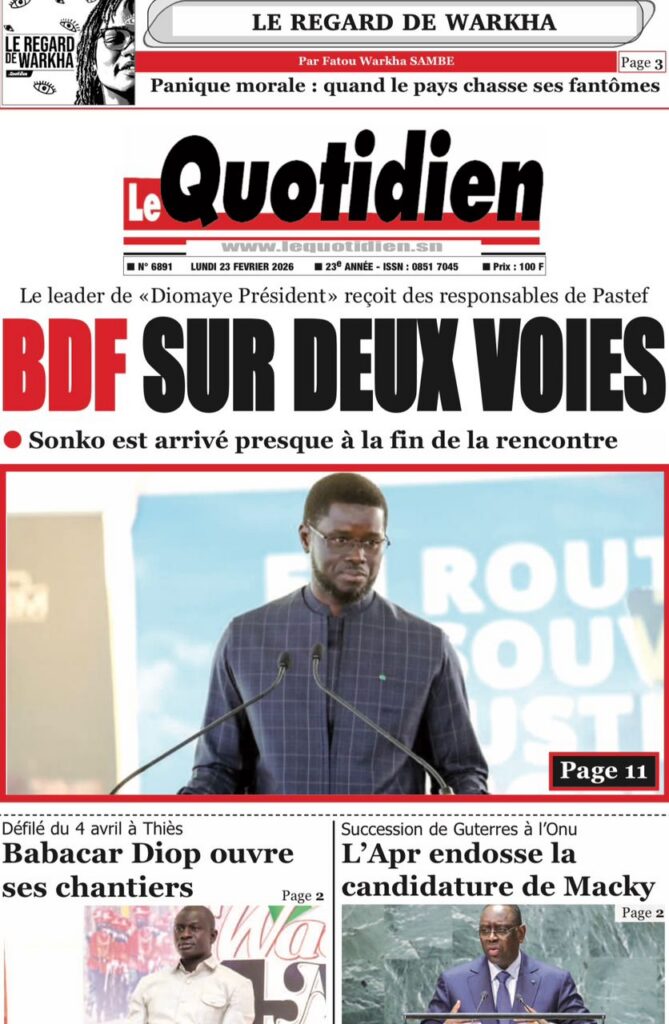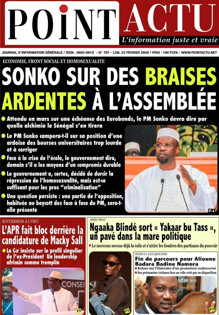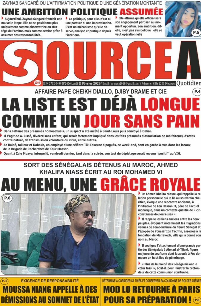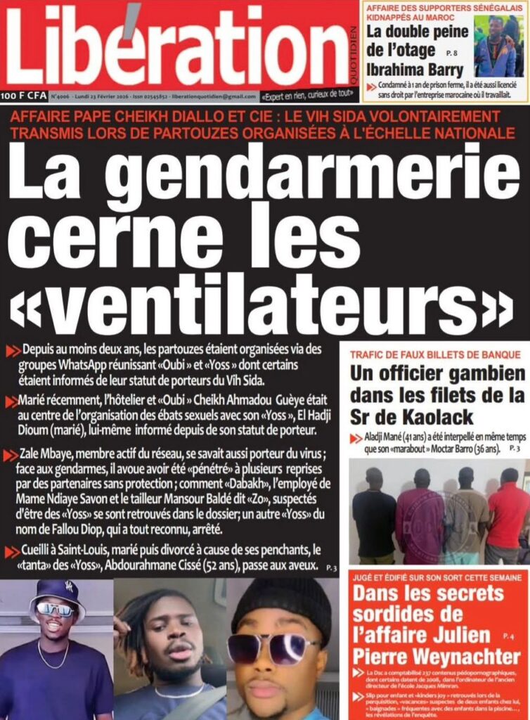 La presse nationale de ce lundi 23 février 2026 est largement dominée par des affaires judiciaires à fort retentissement, des tensions politiques persistantes et plusieurs dossiers sociaux sensibles. Tour d’horizon des principaux titres.