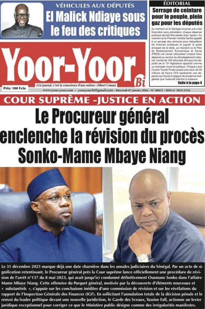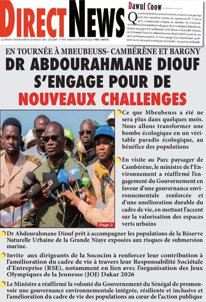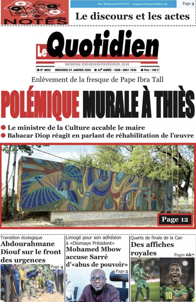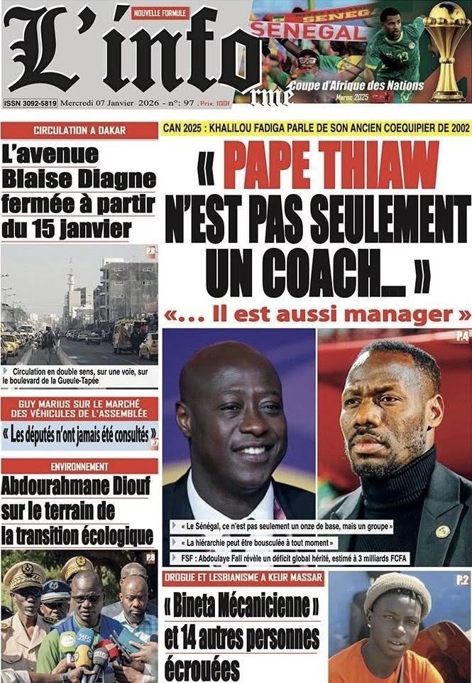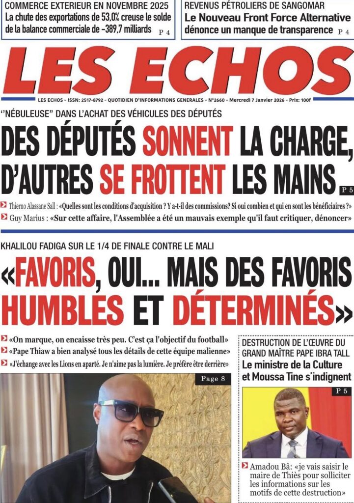 La presse sénégalaise de ce mercredi 07 janvier 2026 met en exergue trois grands centres d’intérêt : l’affirmation de la posture diplomatique du Sénégal sur la scène internationale, les recompositions en cours des équilibres politiques internes, et la montée en intensité de la Coupe d’Afrique des Nations 2025, marquée par des affiches de prestige et de fortes attentes autour des Lions.