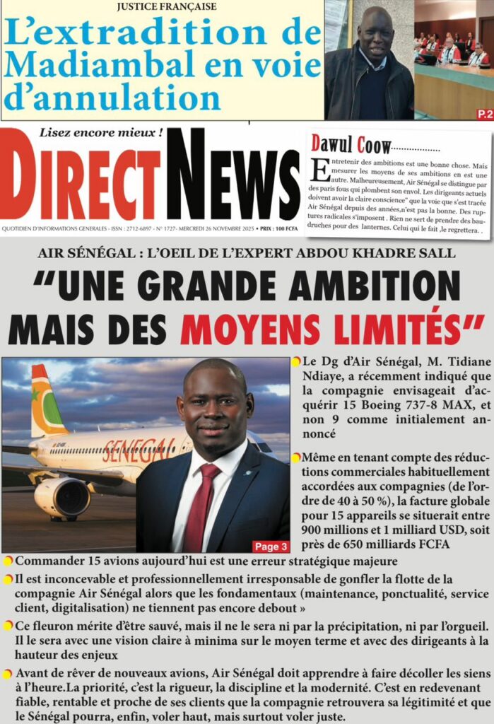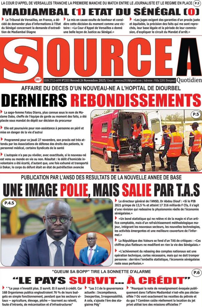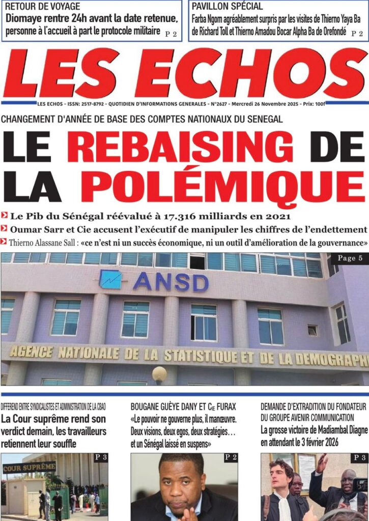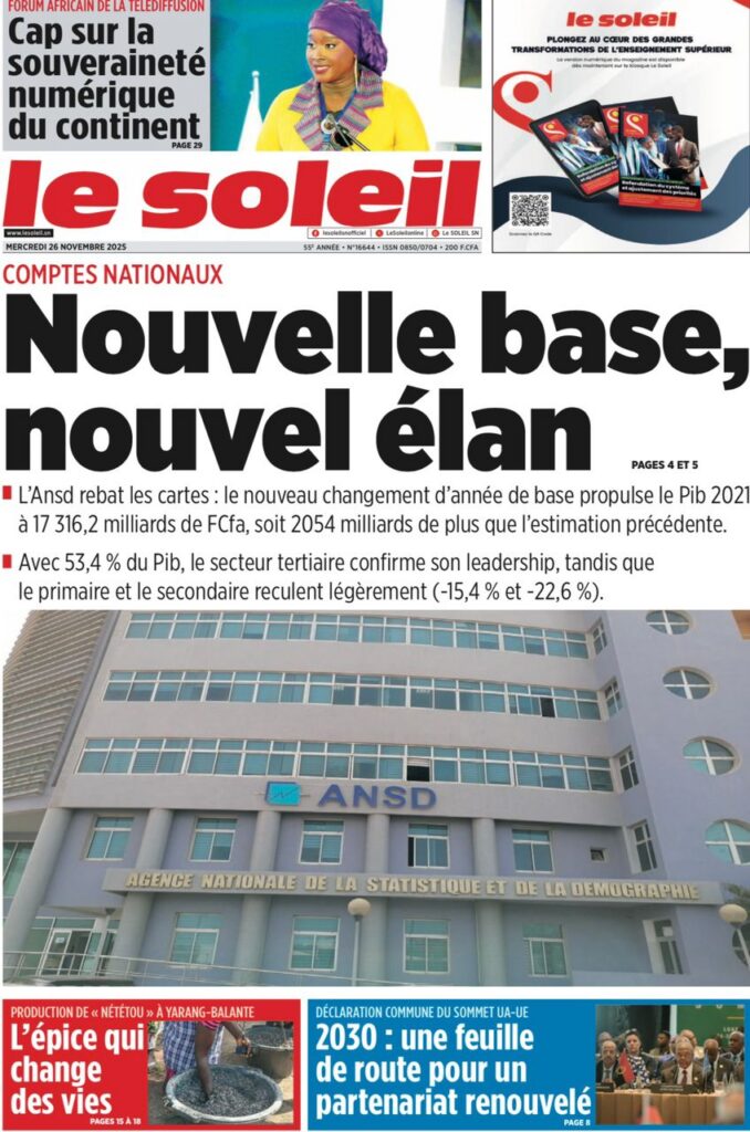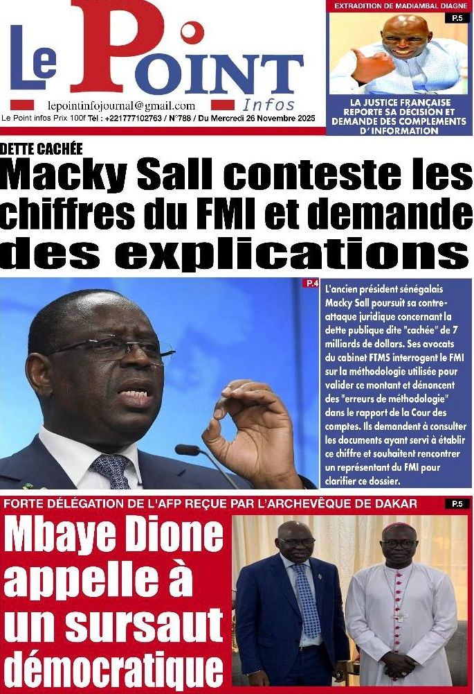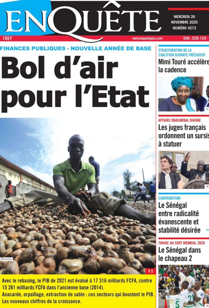 En ce mercredi 26 novembre, les quotidiens sénégalais reviennent largement sur la situation économique du pays, les turbulences politiques, les dossiers judiciaires sensibles, ainsi que sur les tensions autour du PDS, du Pastef et du gouvernement. Le sport n’est pas en reste, notamment avec les performances de Pape Matar Sarr et la presse anglaise qui encense Gana Gueye.