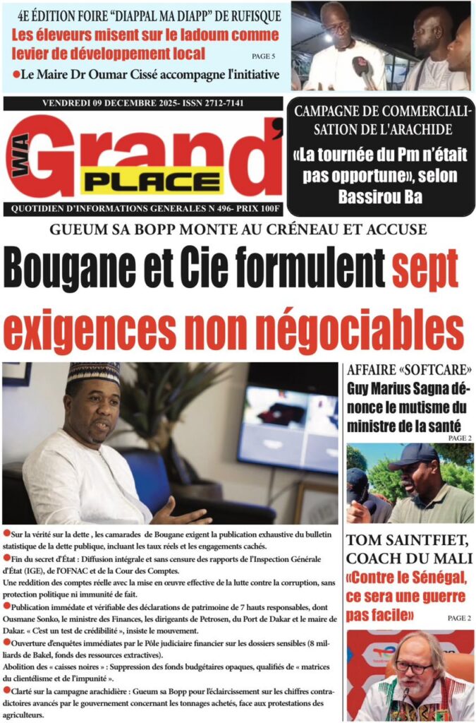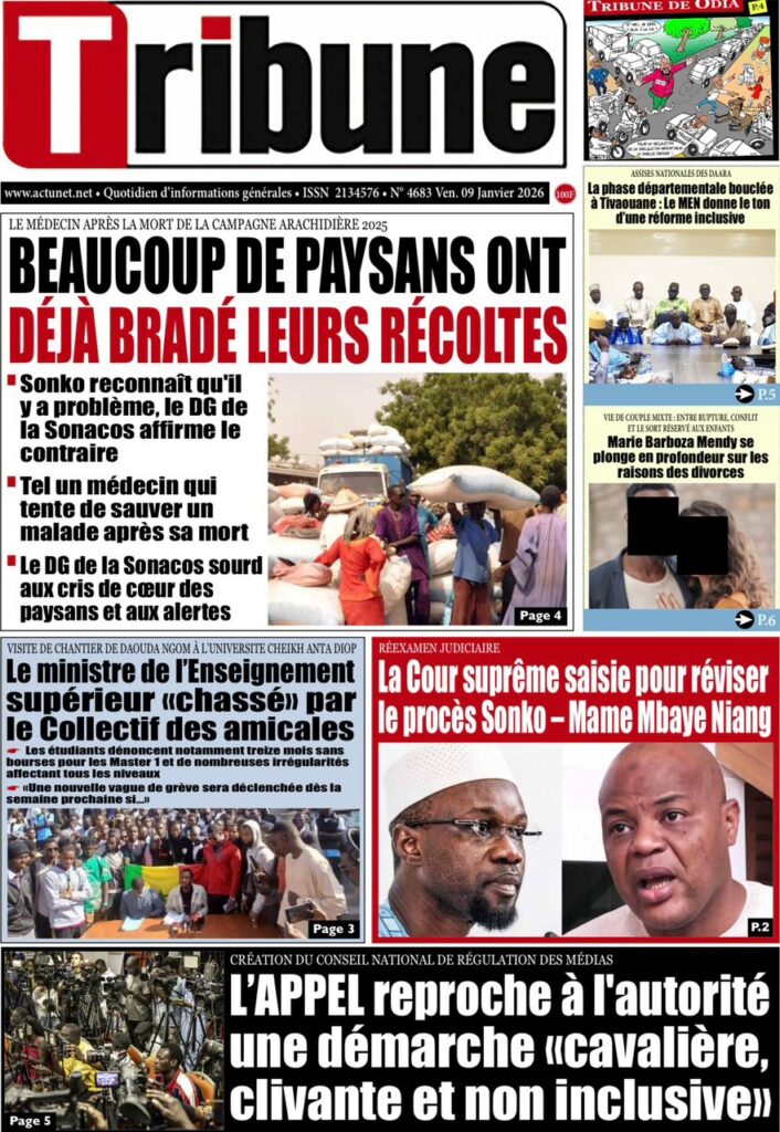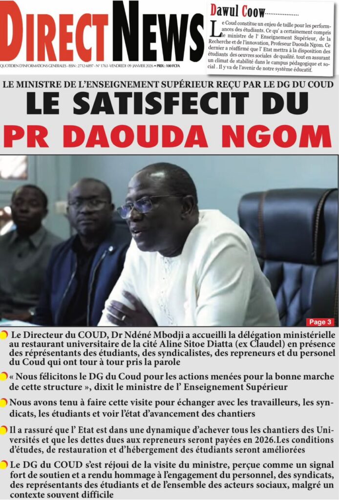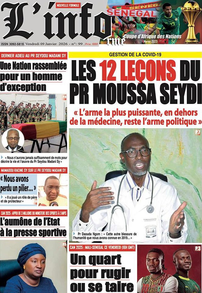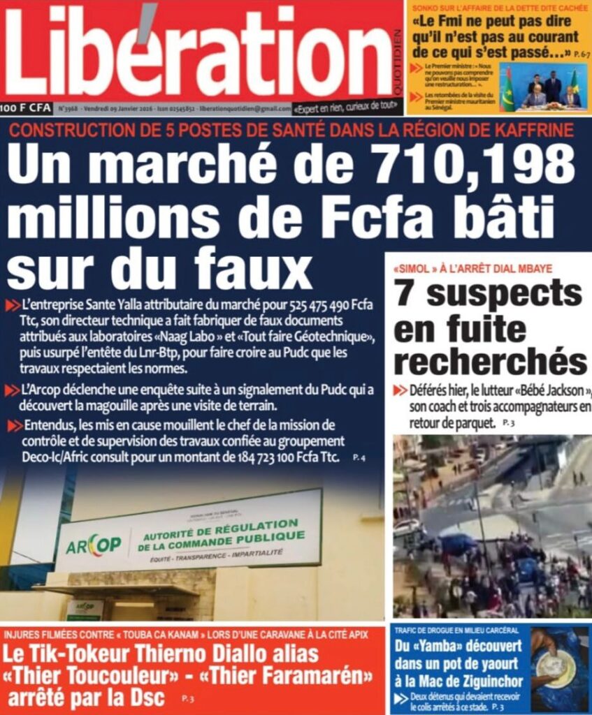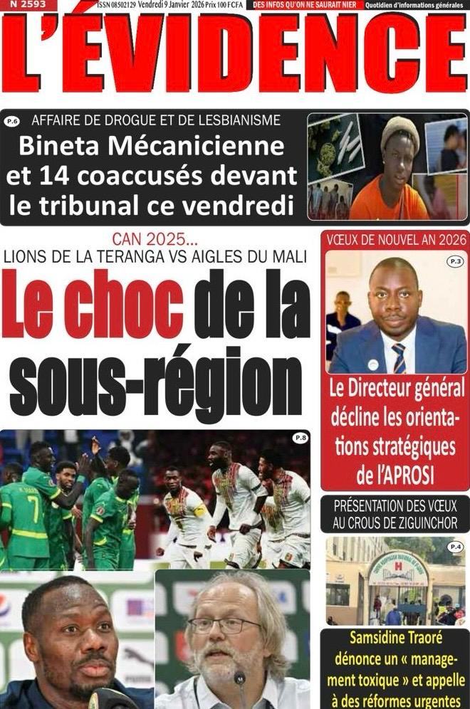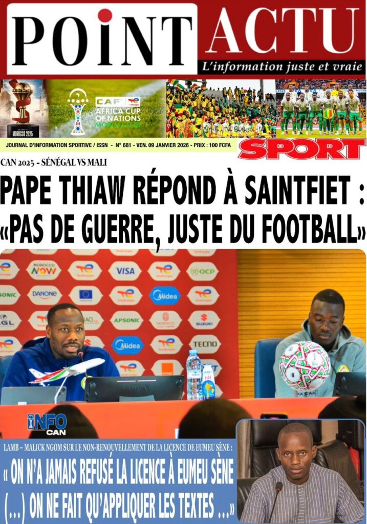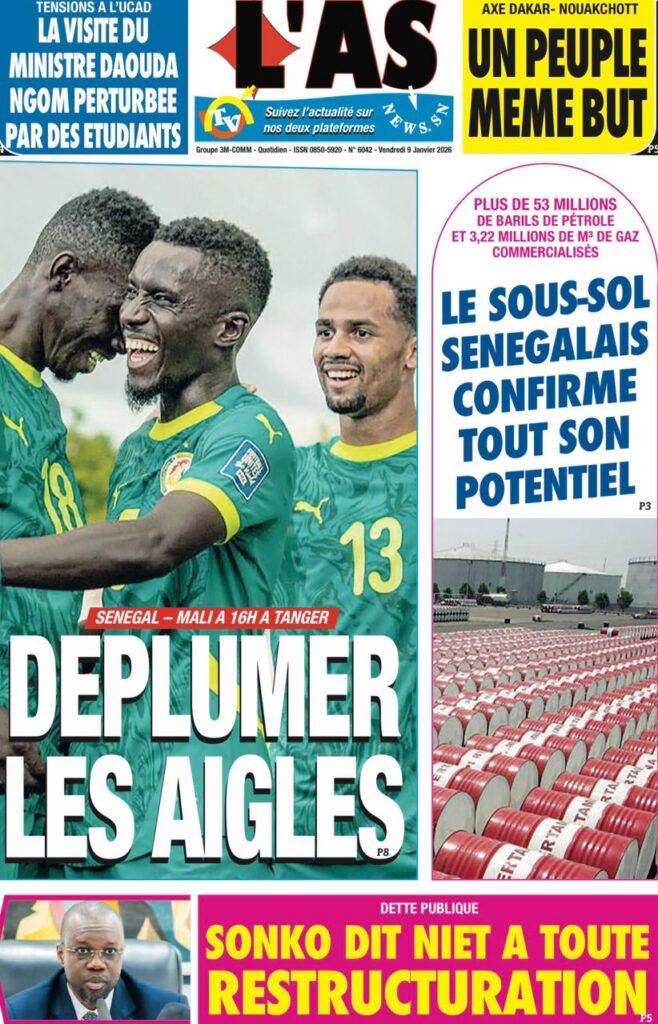 L’actualité sénégalaise de ce vendredi 09 janvier 2026 est largement dominée par le bras de fer entre le gouvernement d’Ousmane Sonko et le Fonds monétaire international (FMI), sur fond de restructuration de la dette publique. Dans le même temps, la CAN 2025 s’invite en une avec un quart de finale explosif entre le Sénégal et le Mali, tandis que d’autres sujets majeurs touchant la gouvernance, la justice et la société occupent l’espace médiatique.