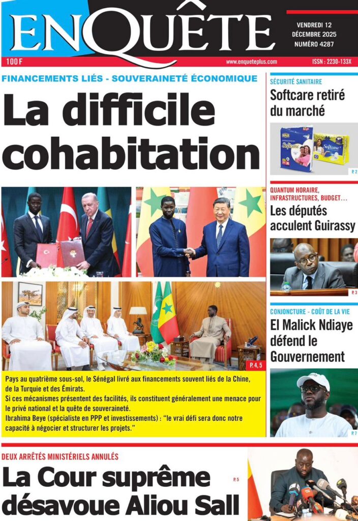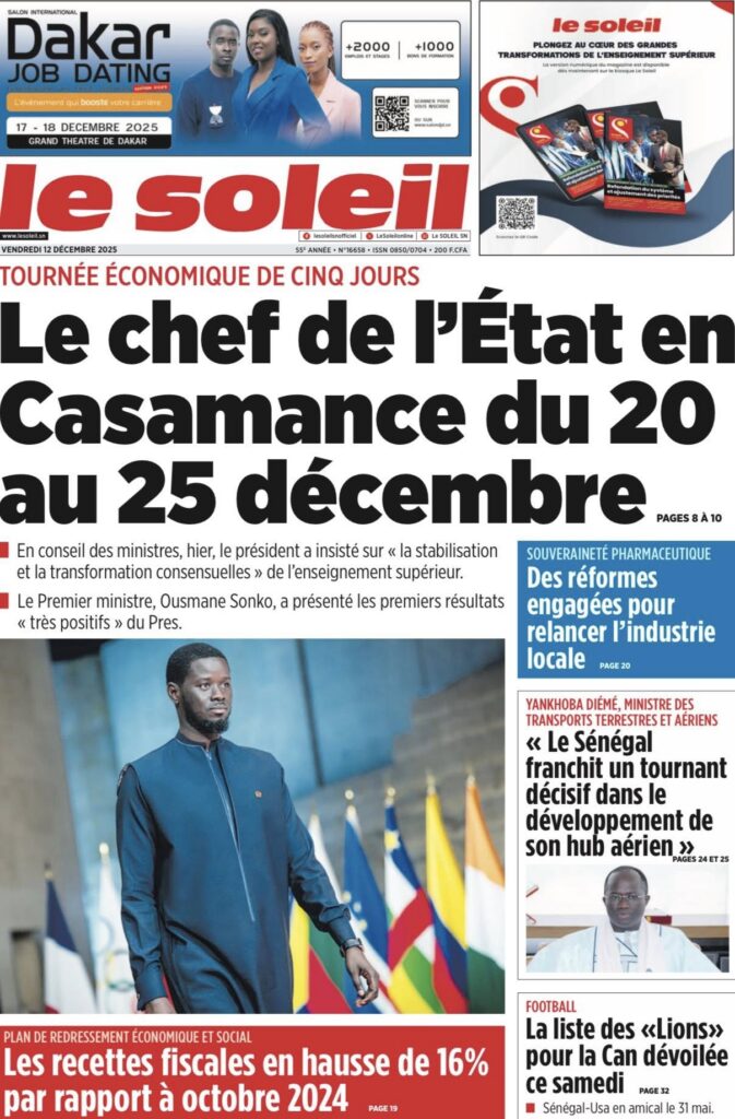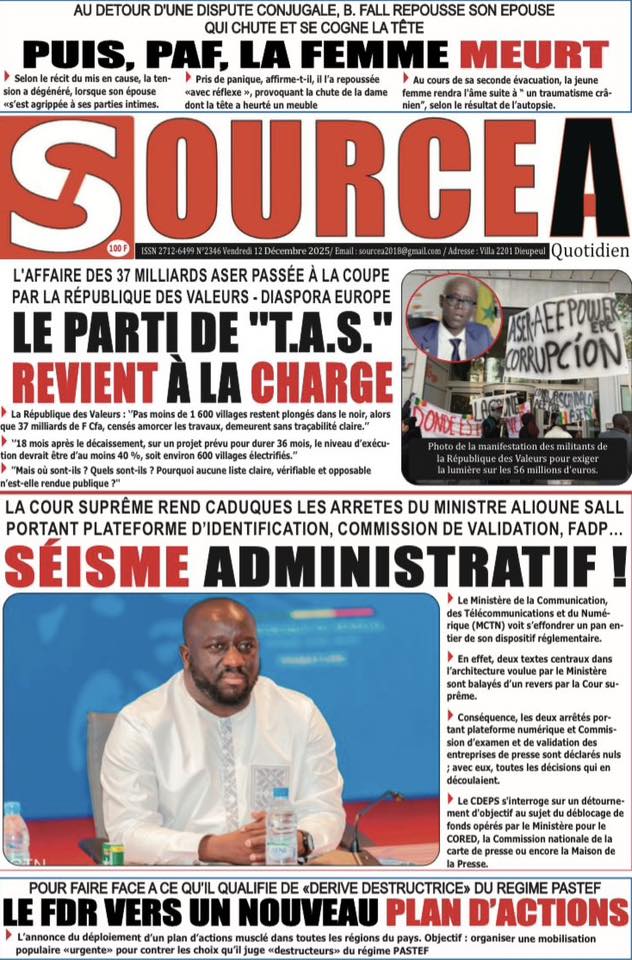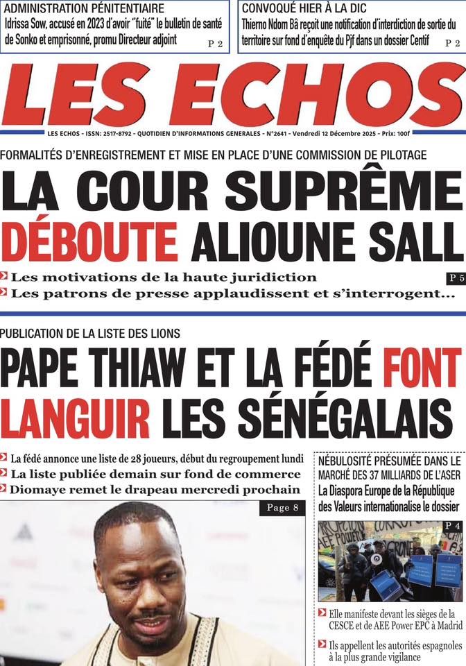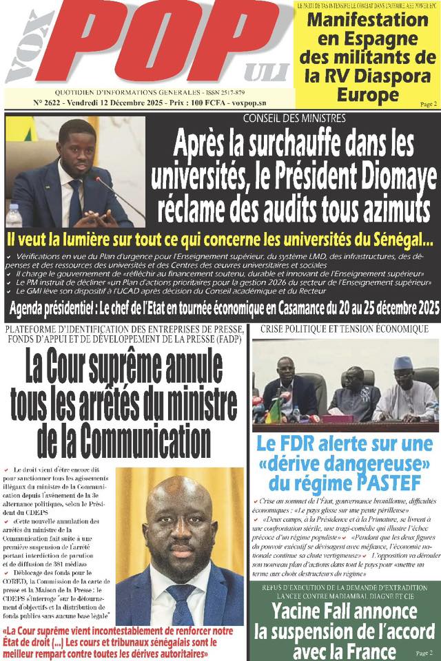 Ce vendredi 12 décembre 2025, les quotidiens sénégalais reviennent largement sur les secousses judiciaires et administratives qui rythment la vie publique. Entre décisions fortes de la Cour suprême, exigences diplomatiques, polémiques dans le secteur de la communication et annonces sportives, l’actualité nationale se décline en tensions, verdicts et attentes.