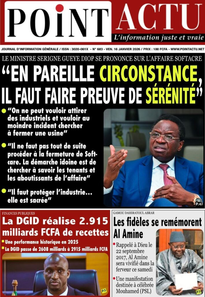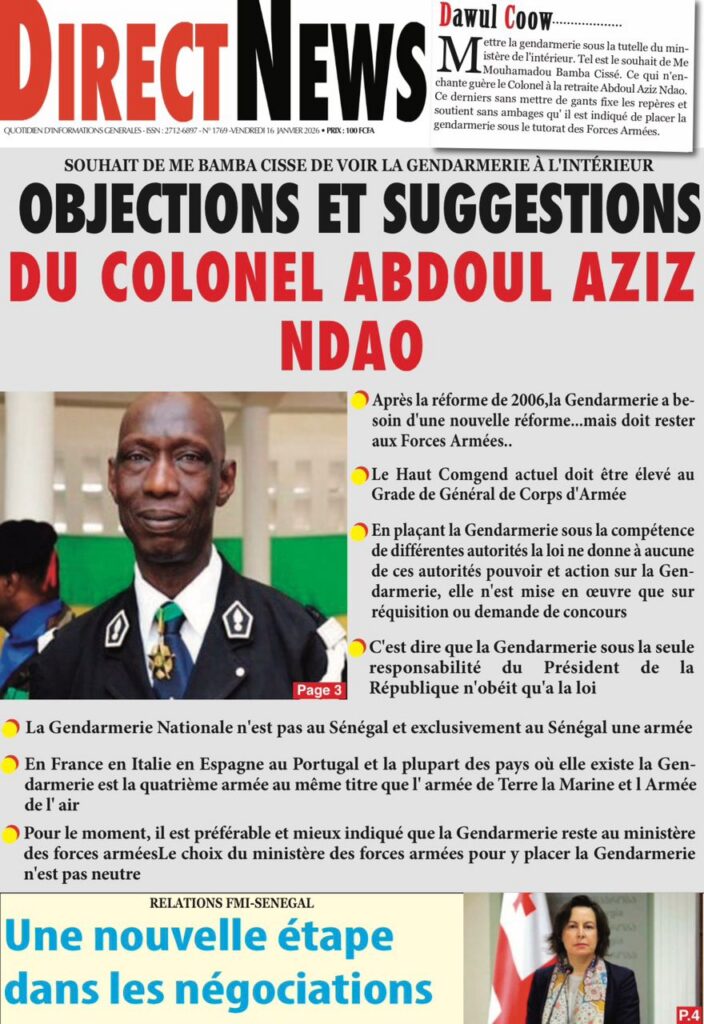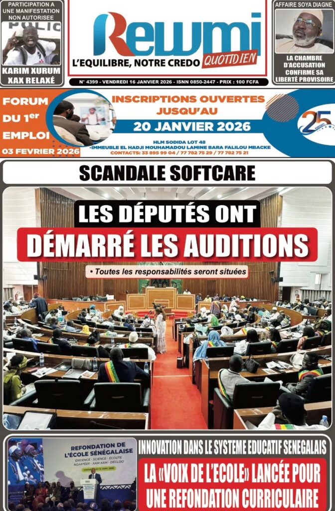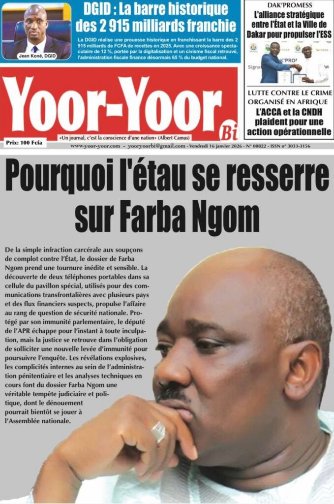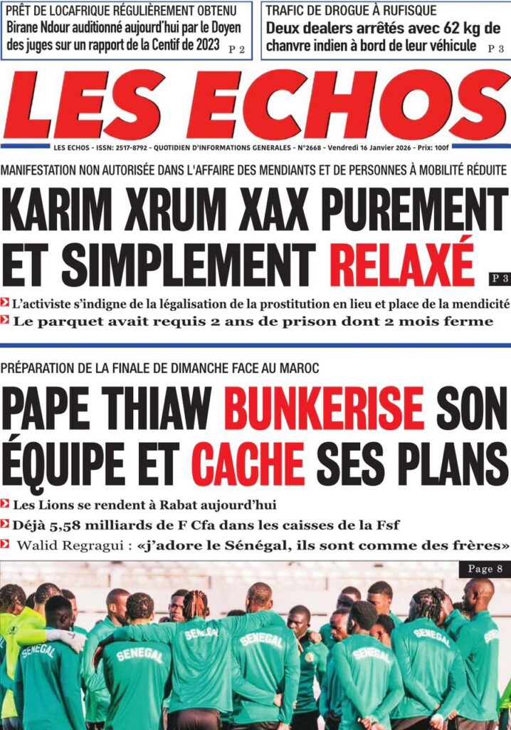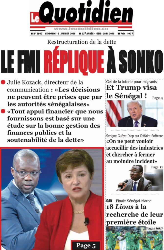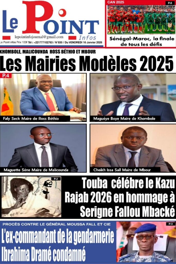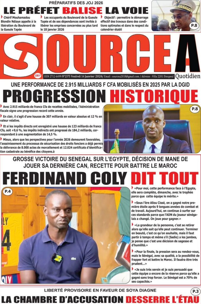 La presse sénégalaise de ce vendredi 16 janvier 2026 est dominée par quatre grands axes : la situation des finances publiques, les dossiers judiciaires et la reddition des comptes, les tensions politico-institutionnelles, et l’effervescence autour de la CAN 2025, avec la finale très attendue entre le Sénégal et le Maroc.