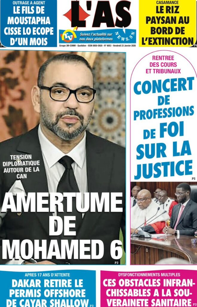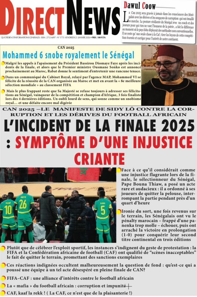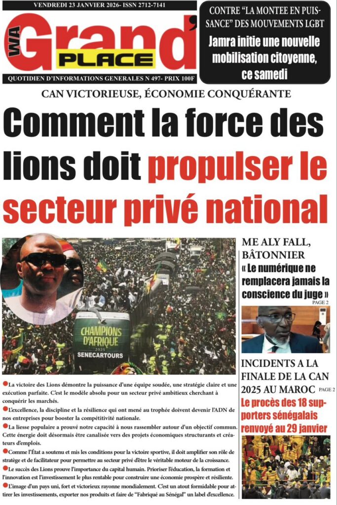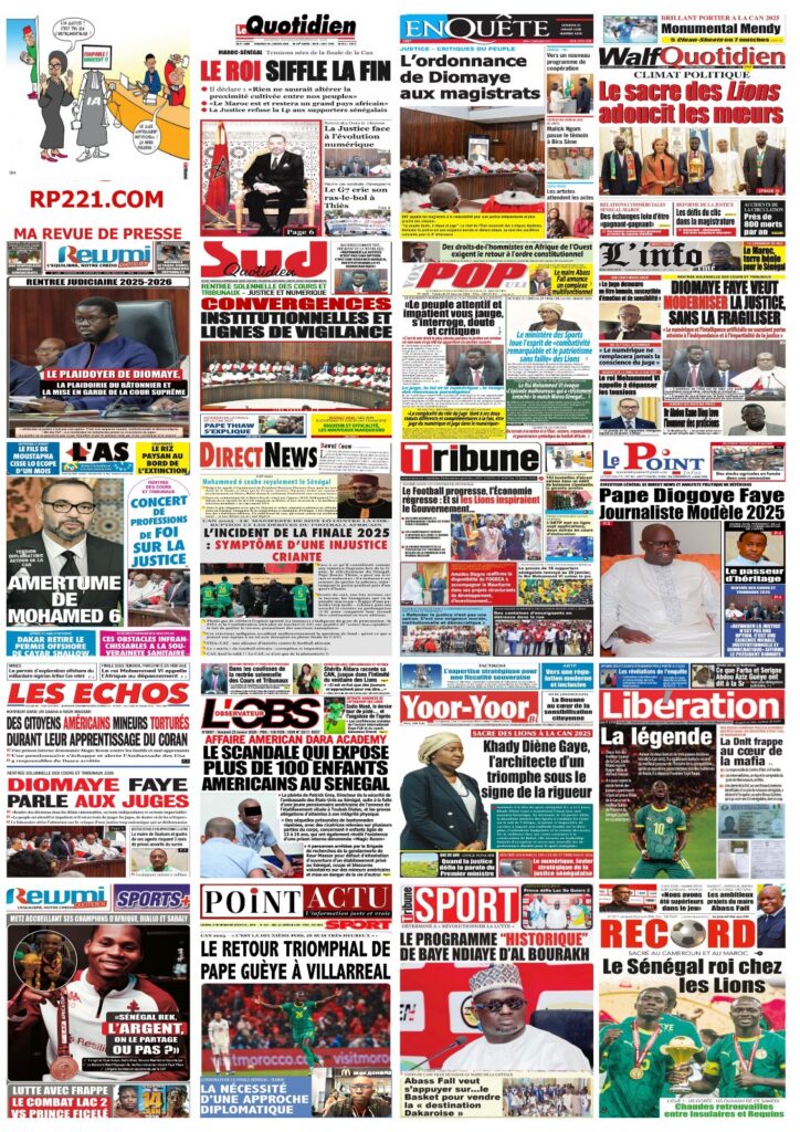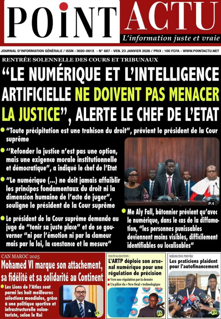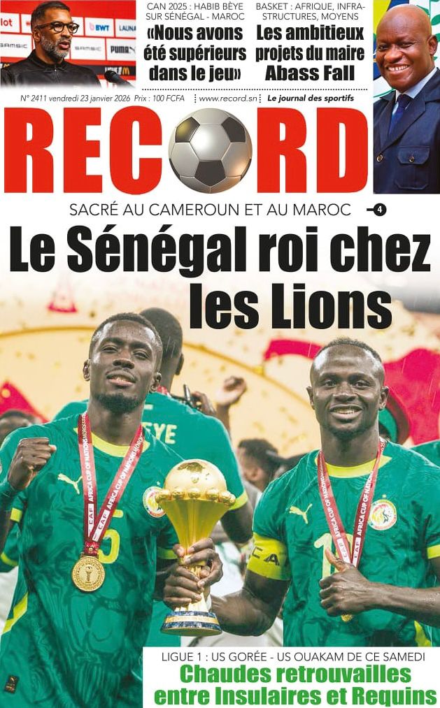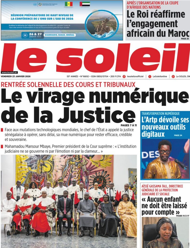 La presse sénégalaise de ce vendredi 23 janvier 2026 est largement dominée par trois grands axes : la justice et ses réformes, le rôle du président Bassirou Diomaye Faye, et le sacre historique des Lions à la CAN 2025. À cela s’ajoutent des dossiers sensibles sur l’économie, la gouvernance et des affaires judiciaires à fort impact social.