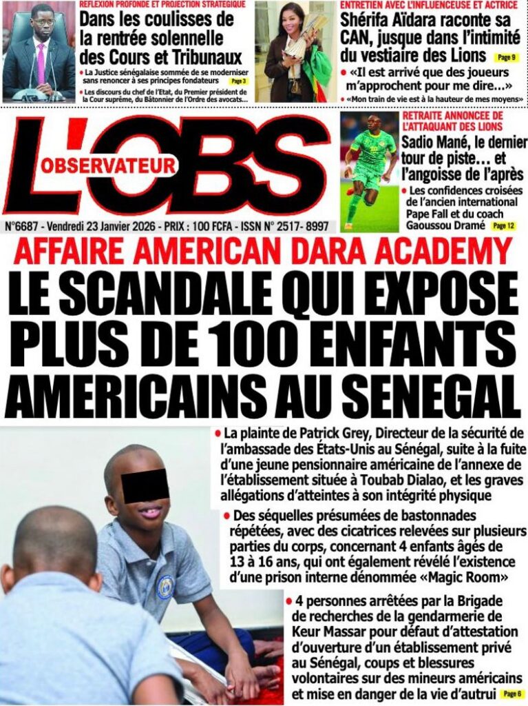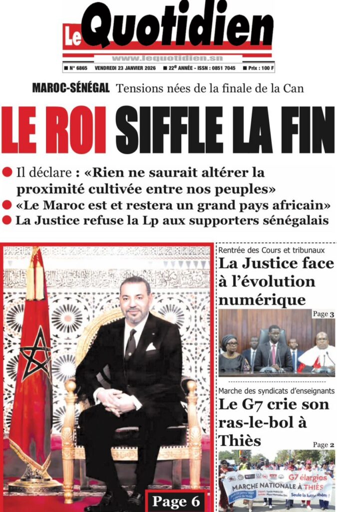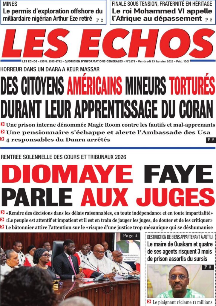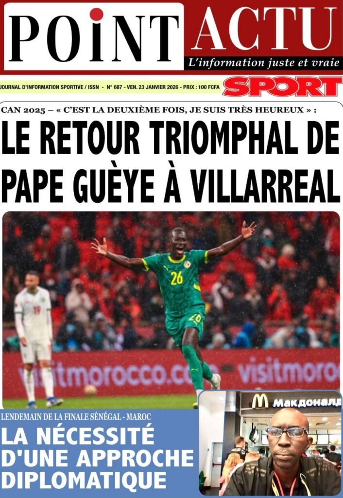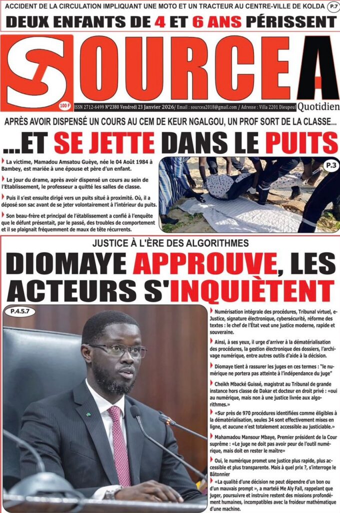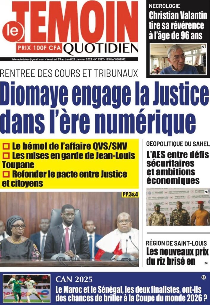 La presse sénégalaise de ce vendredi 23 janvier 2026 est largement dominée par trois grands axes : la justice et ses réformes, le rôle du président Bassirou Diomaye Faye, et le sacre historique des Lions à la CAN 2025. À cela s’ajoutent des dossiers sensibles sur l’économie, la gouvernance et des affaires judiciaires à fort impact social.