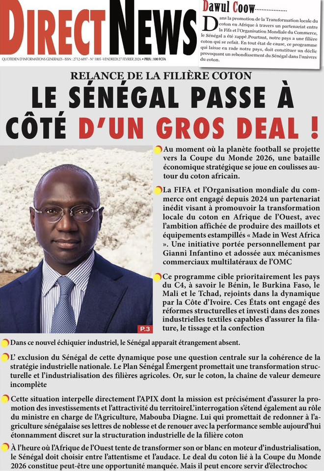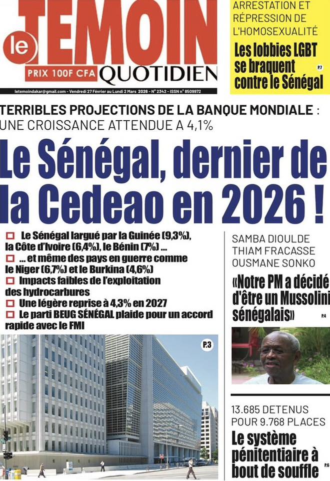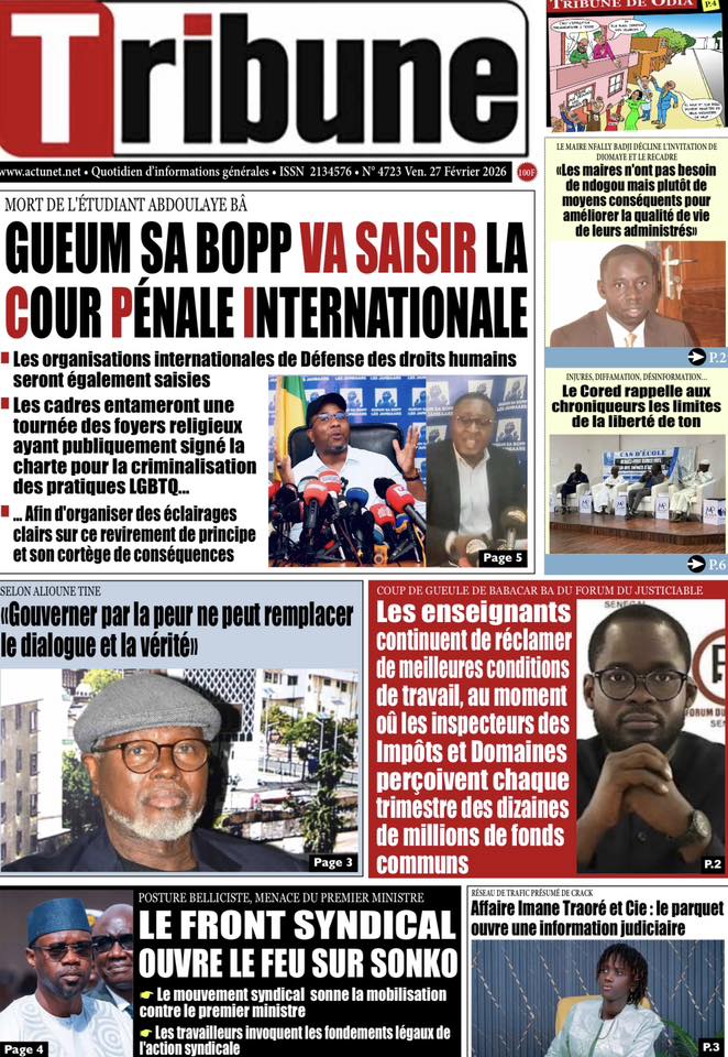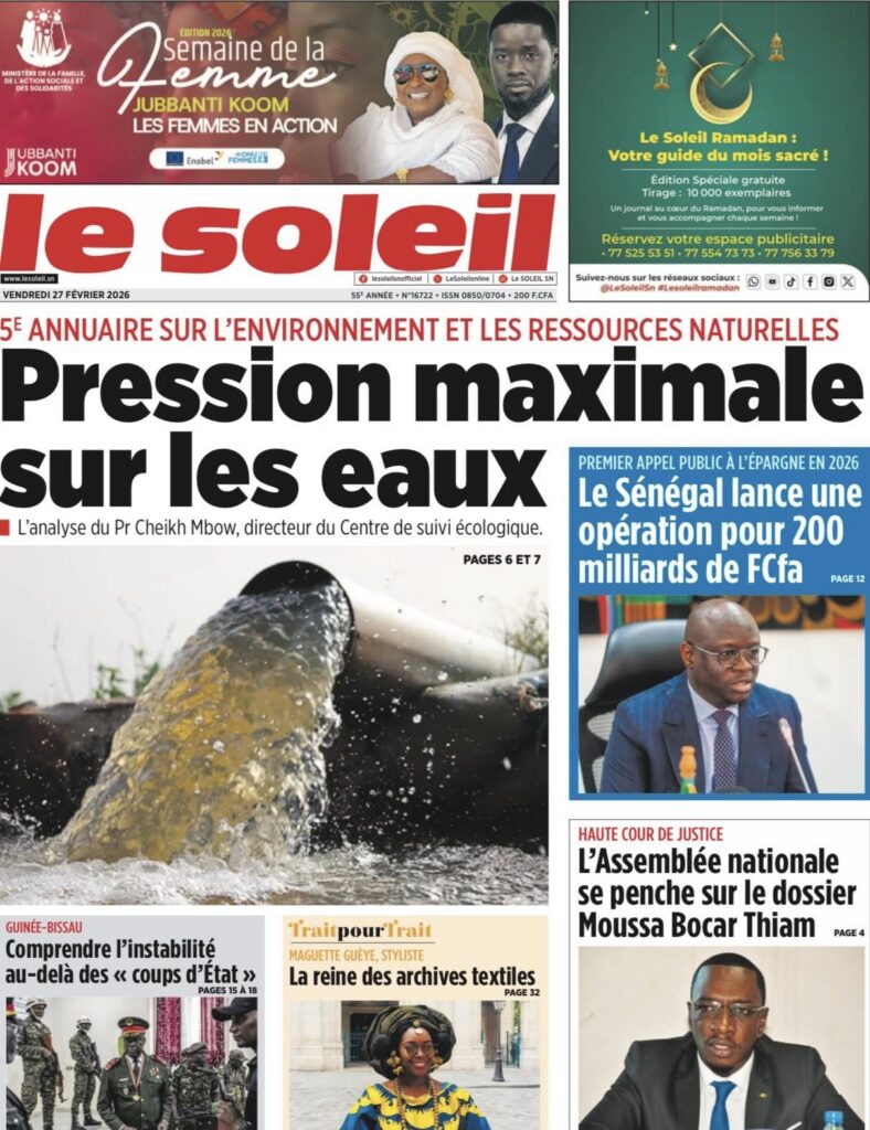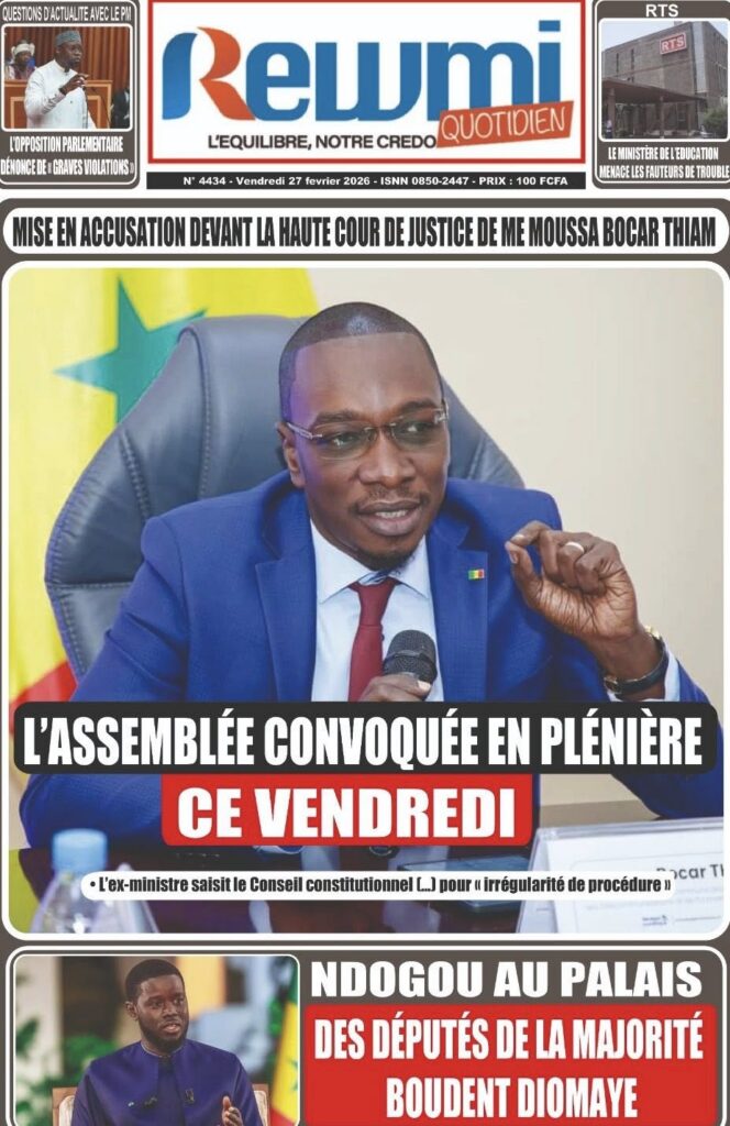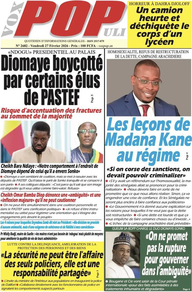 Les quotidiens sénégalais de ce vendredi 27 février 2026 sont dominés par les difficultés financières du gouvernement qui cherche 200 milliards de FCFA, et par l’audition de l’ancien ministre Moustapha Diop devant la Haute Cour de Justice. Entre crise sociale avec les enseignants, tensions avec la Côte d’Ivoire et malaise au sein du Pastef, la presse offre un panorama inquiétant de la situation nationale.