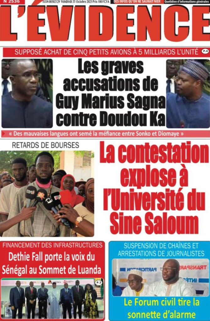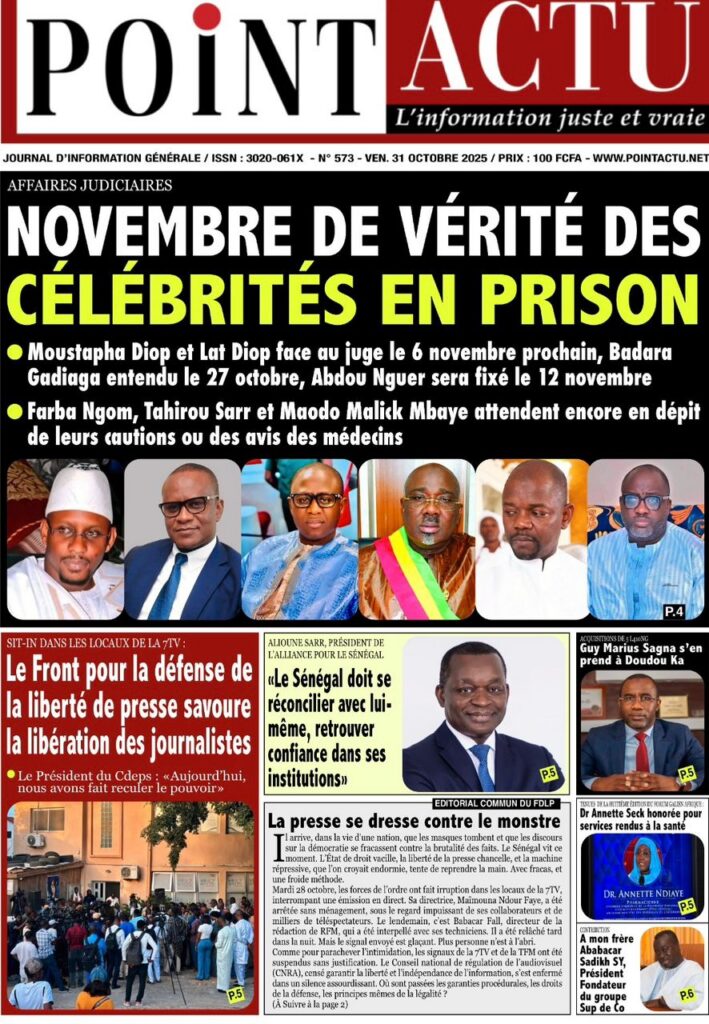 La scène médiatique sénégalaise de ce vendredi 31 octobre est dominée par les débats sur la justice, la liberté de la presse et les manœuvres politiques à l’approche des grands rendez-vous nationaux.