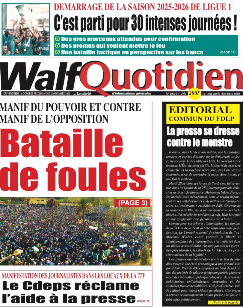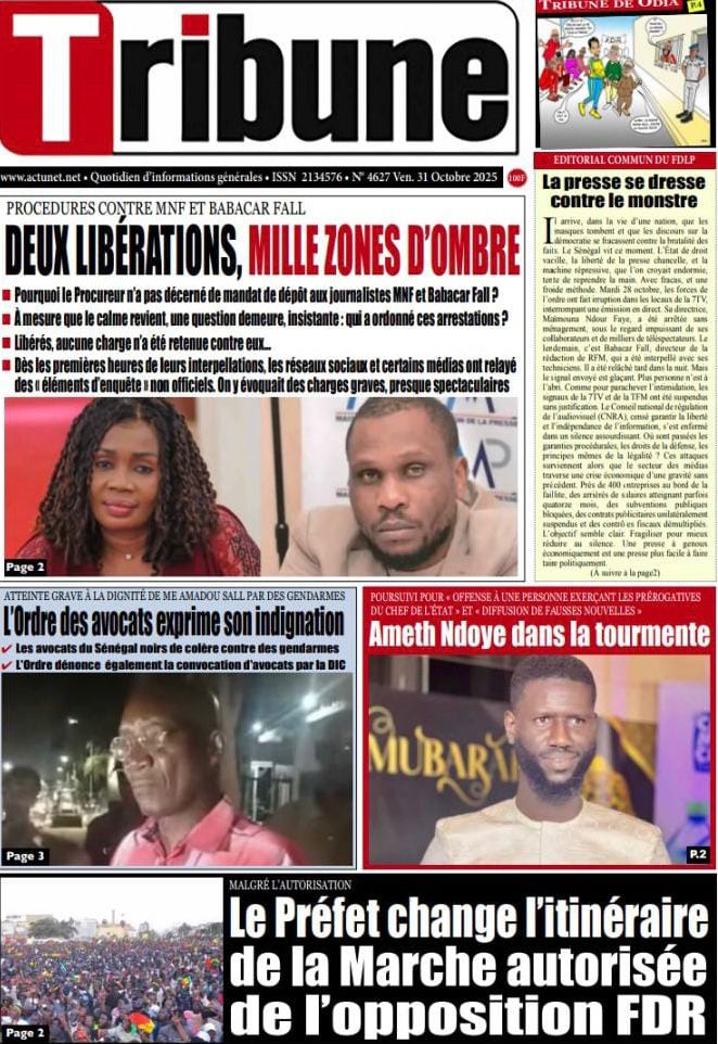 Unes des journaux du vendredi 31 octobre 2025 : Justice, opposition et libertés au cœur de l’actualité