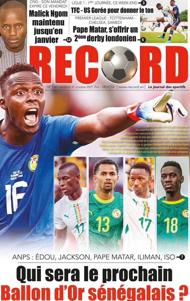 Sur la scène sportive, Record consacre sa une au Ballon d’Or sénégalais, posant la question : « Qui sera le prochain Ballon d’Or sénégalais ? »