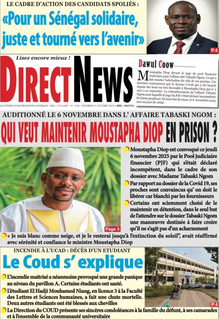 Direct News s’interroge : « Qui veut maintenir Moustapha Diop en prison ? », laissant entendre des luttes d’influence au sein même du pouvoir.