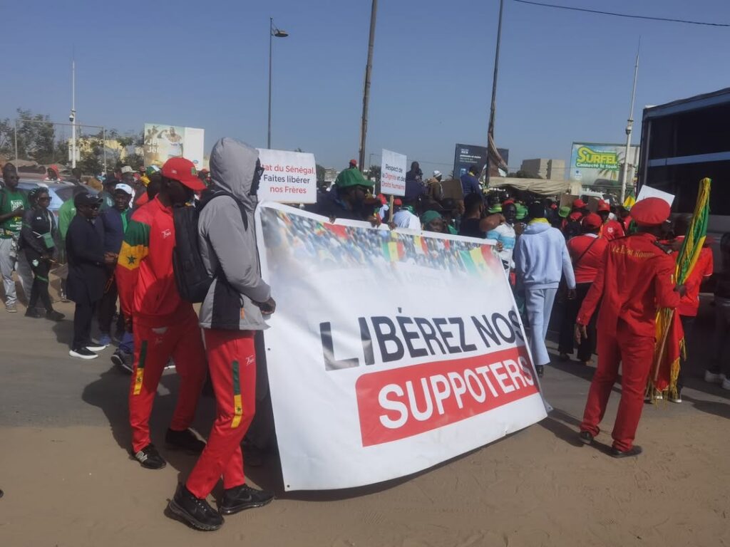 Une marche pacifique s’est tenue samedi à Dakar, à l’initiative de collectifs citoyens et de supporters, pour exiger la libération des 18 supporters sénégalais détenus au Maroc.