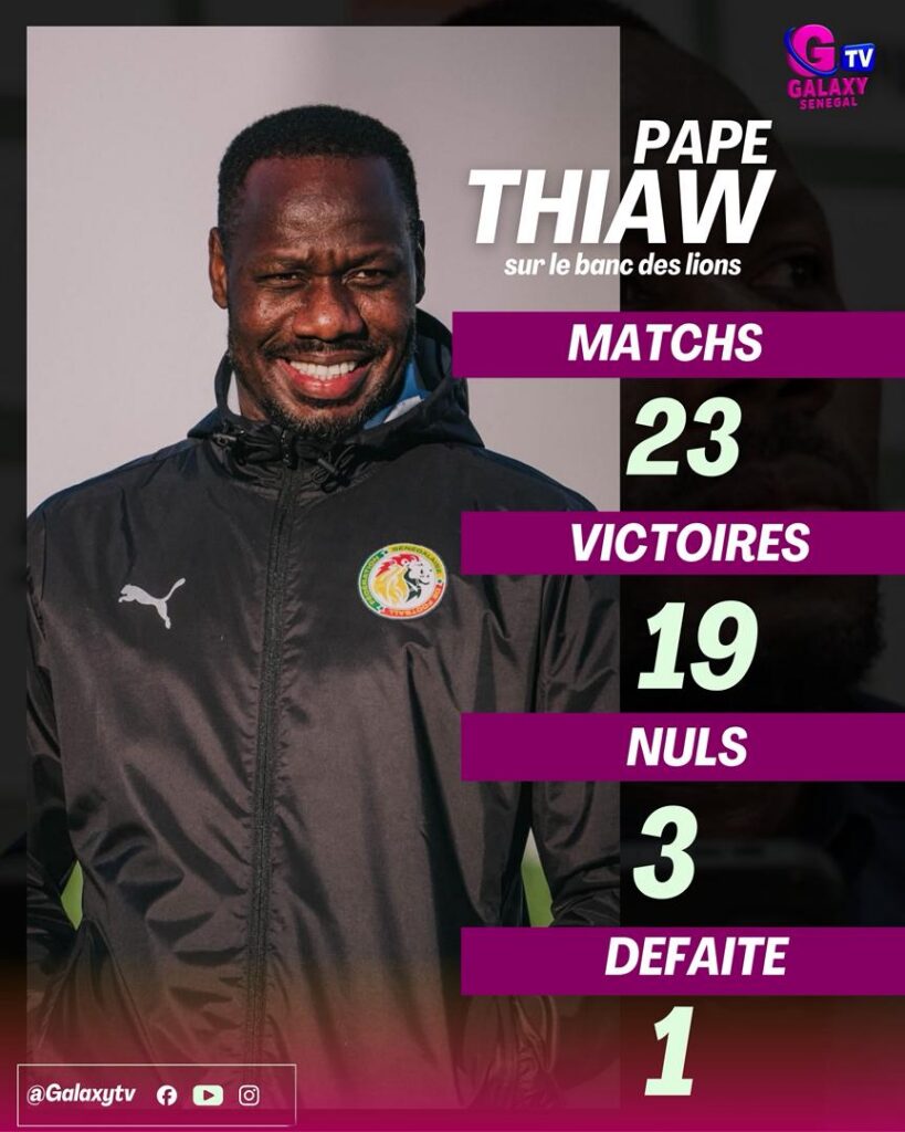 Un nouveau succès, le 19e sous l’ère Pape Thiaw en 23 matchs. Sur le banc des Lions, il n’a partagé les points que trois fois. Seuls le Soudan (0-0), l’Irlande (1-1) et la RD Congo (1-1) ont réussi à tenir tête aux Lions. Brésil est la seule équipe à avoir battu l’équipe de Pape Thiaw. Une défaite (2-0).
