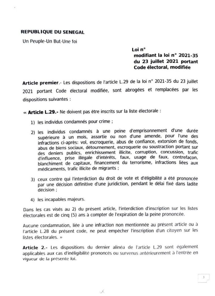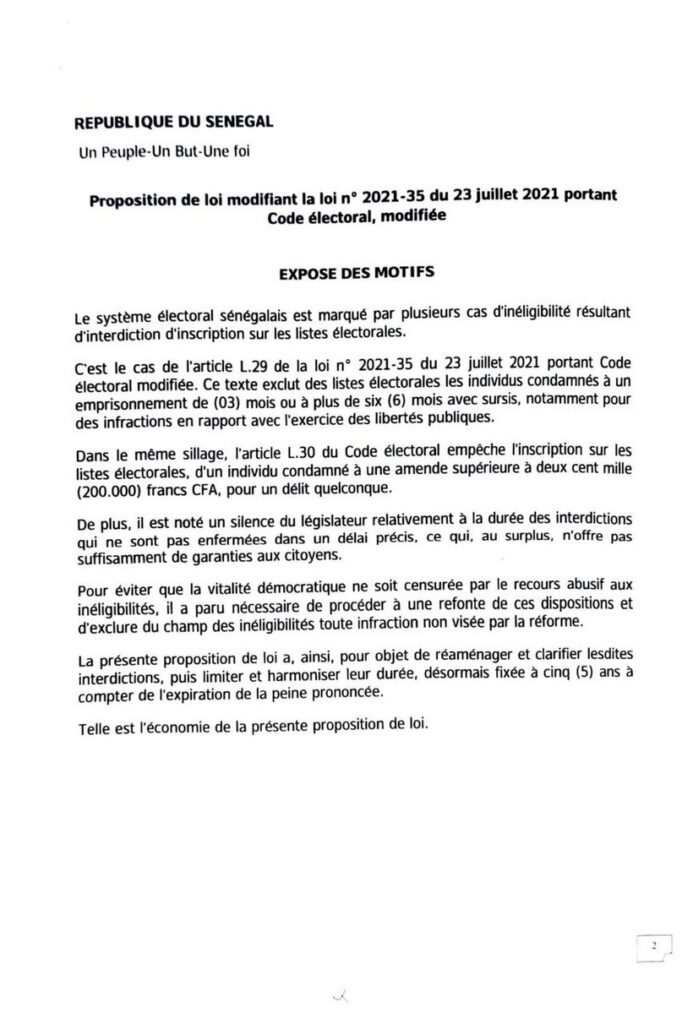 Dans leur exposé des motifs, les parlementaires du groupe PASTEF-Les Patriotes dénoncent un dispositif actuel qu’ils jugent restrictif. Ils estiment que plusieurs dispositions, notamment les articles L.29 et L.30, entraînent des cas d’inéligibilité liés à des interdictions d’inscription sur les listes électorales, y compris pour des infractions en lien avec l’exercice des libertés publiques.