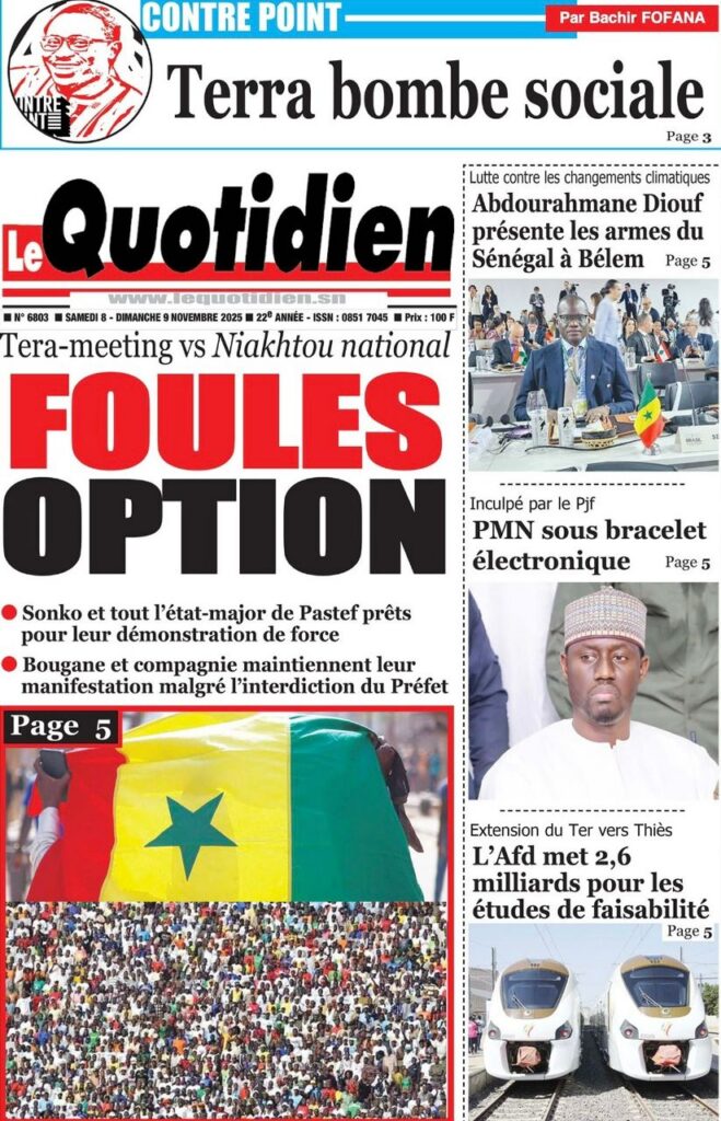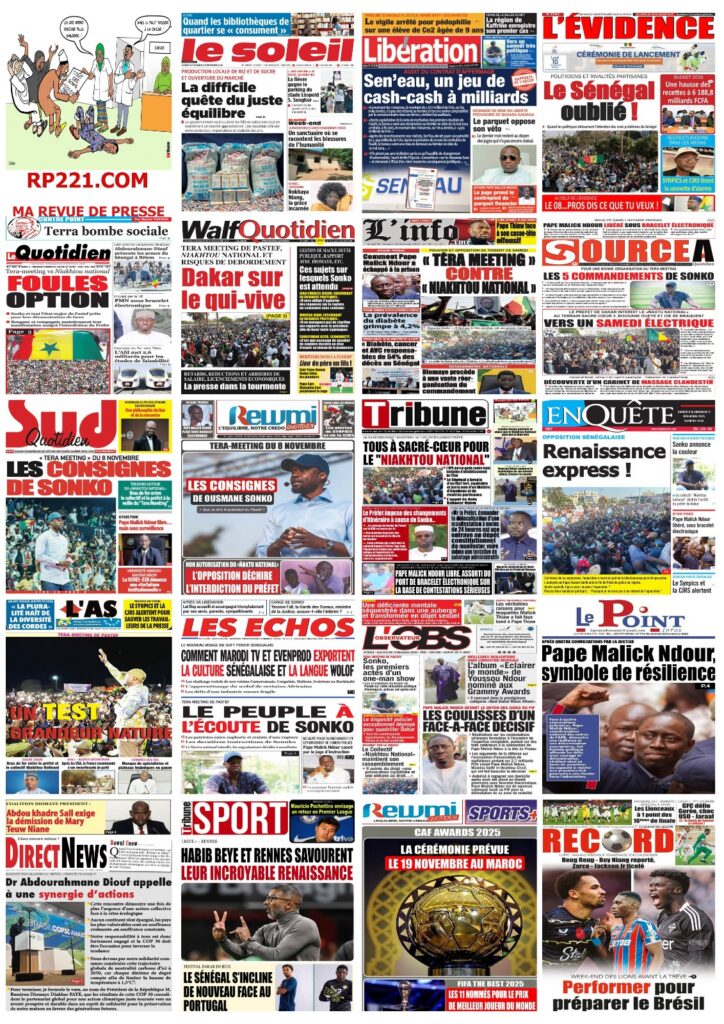 La tension politique, la bataille communicationnelle autour du Tera Meeting de Pastef, la place de l’État face aux urgences sociales, ainsi que l’actualité sportive dominent largement les Unes de ce samedi. Les journaux scrutent un pays en effervescence, entre mobilisation politique, débats institutionnels et enjeux économiques. Voici l’essentiel à retenir.
