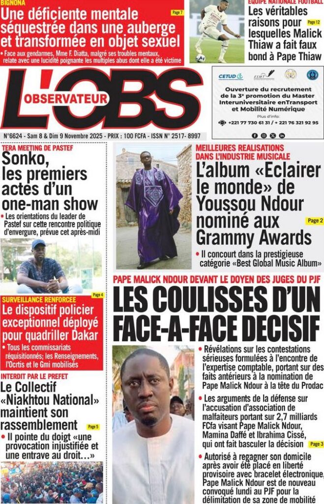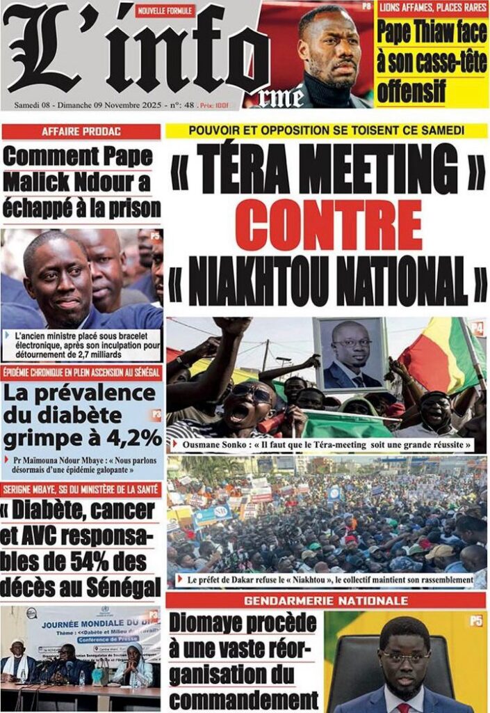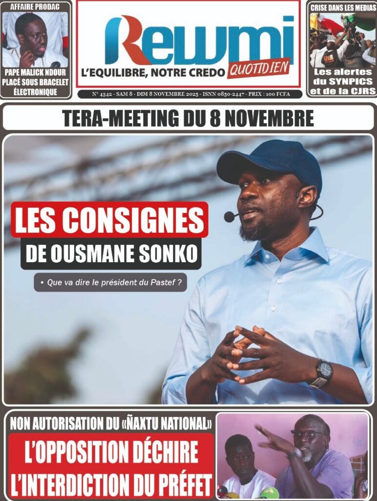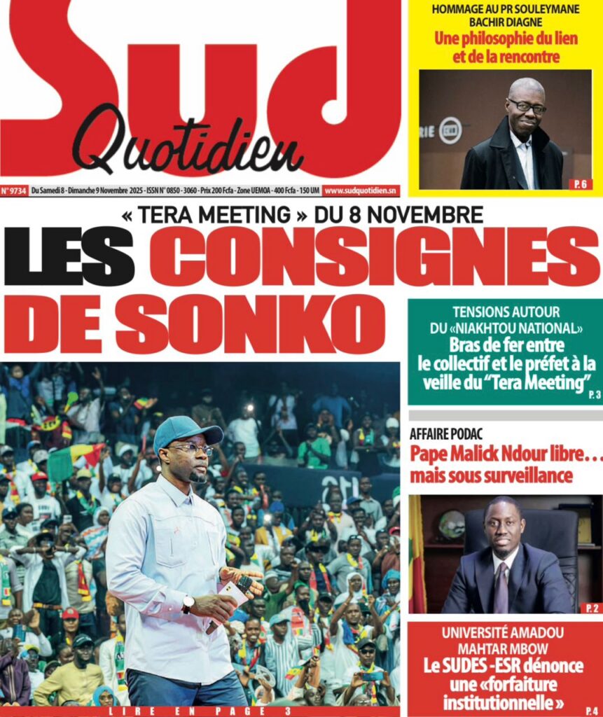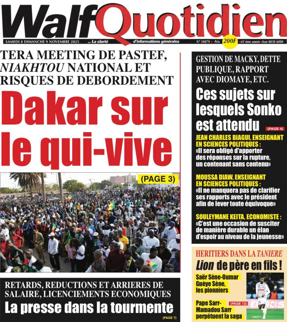 Samedi 8 novembre 2025 : Tensions politiques, mobilisation de Pastef et grands dossiers à la Une