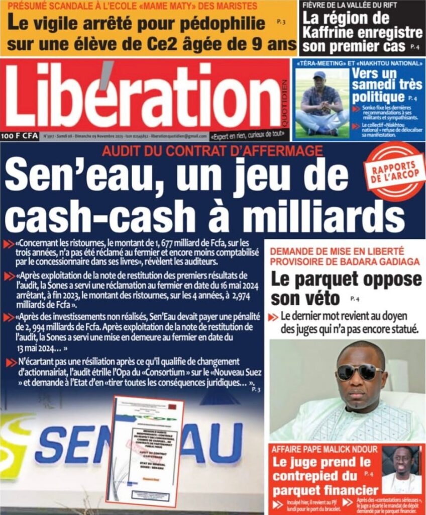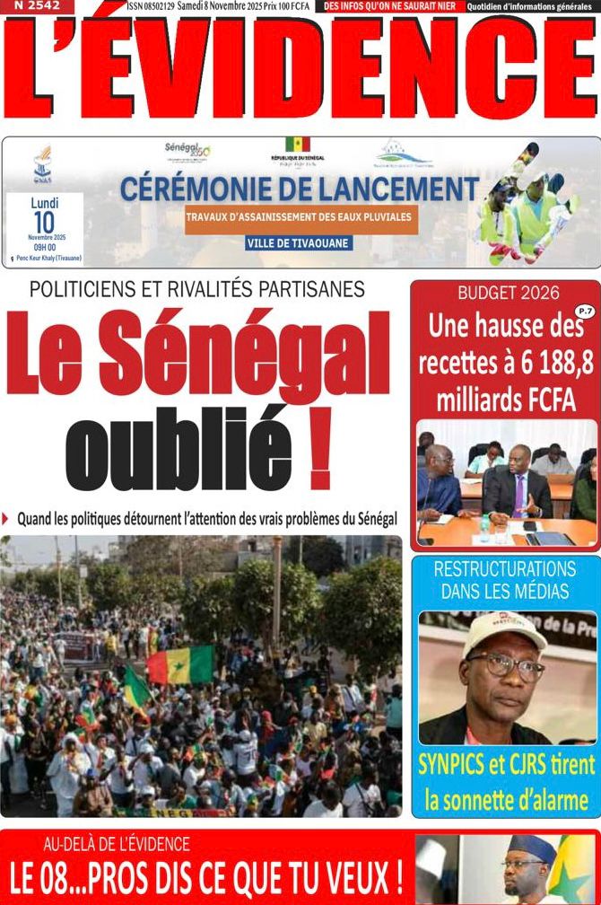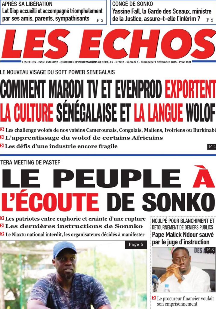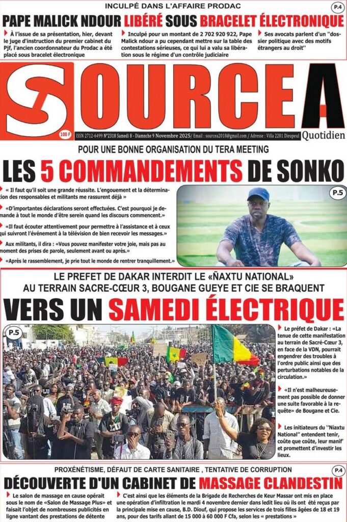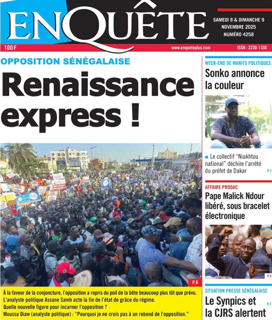 Samedi 8 novembre 2025 : Tensions politiques, mobilisation de Pastef et grands dossiers à la Une