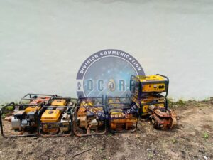 Les forces de l’ordre ont saisi un important lot de matériels utilisés pour l’exploitation illégale : 12 groupes électrogènes, 52 motopompes, 8 marteaux-piqueurs, une pompe à eau, 7 tricycles, 40 motos, un véhicule de type « Piki Paka », 4 machines-cracheuses, ainsi que plusieurs installations de fortune détruites.