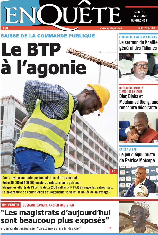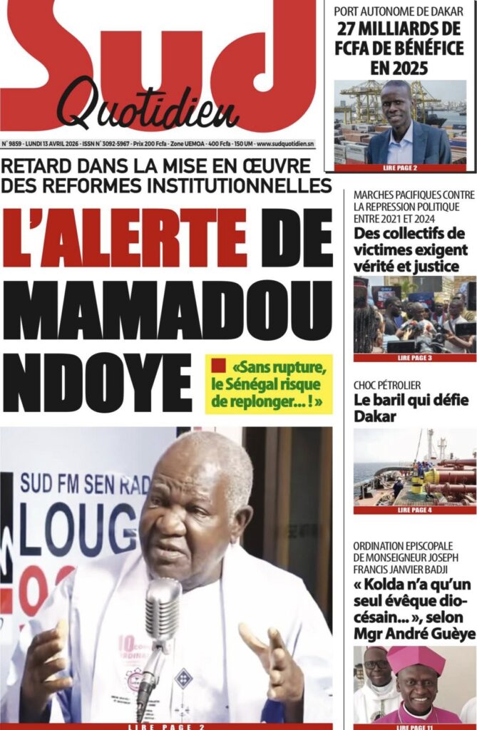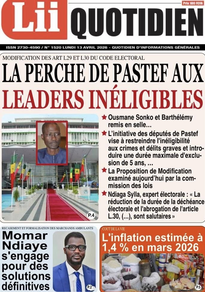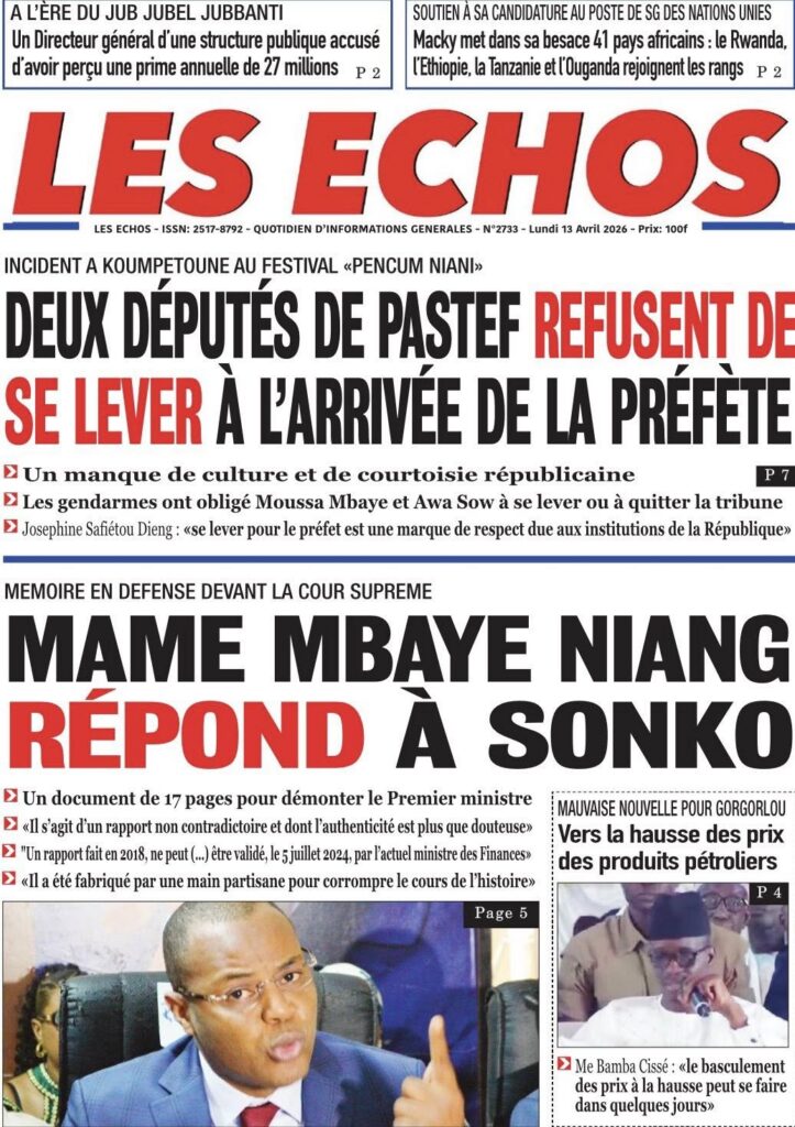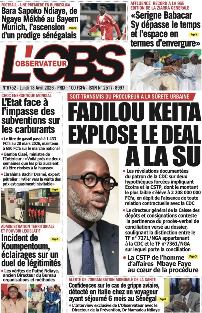 La presse sénégalaise de ce lundi s’ouvre sur un tableau économique sombre : la croissance du PIB s’effondre de 6,7% en 2025 à 2,5% en 2026, une crise énergétique se profile avec une hausse imminente des prix des carburants, et le secteur du BTP crie à l’agonie avec 30 000 à 100 000 emplois menacés. Sur le plan politique, la proposition de loi Pastef sur le Code électoral cristallise les tensions entre majorité et opposition, tandis qu’un incident protocolaire à Koumpentoum entre deux députés Pastef et la préfète alimente le débat sur les rapports entre élus et administration. En toile de fond, la Ziarra générale de Tivaouane et le geste humanitaire de Mouhamed Dieng pour des jumelles siamoises.