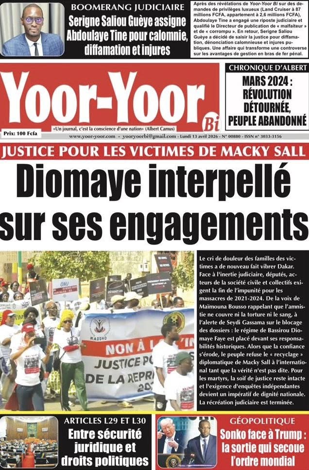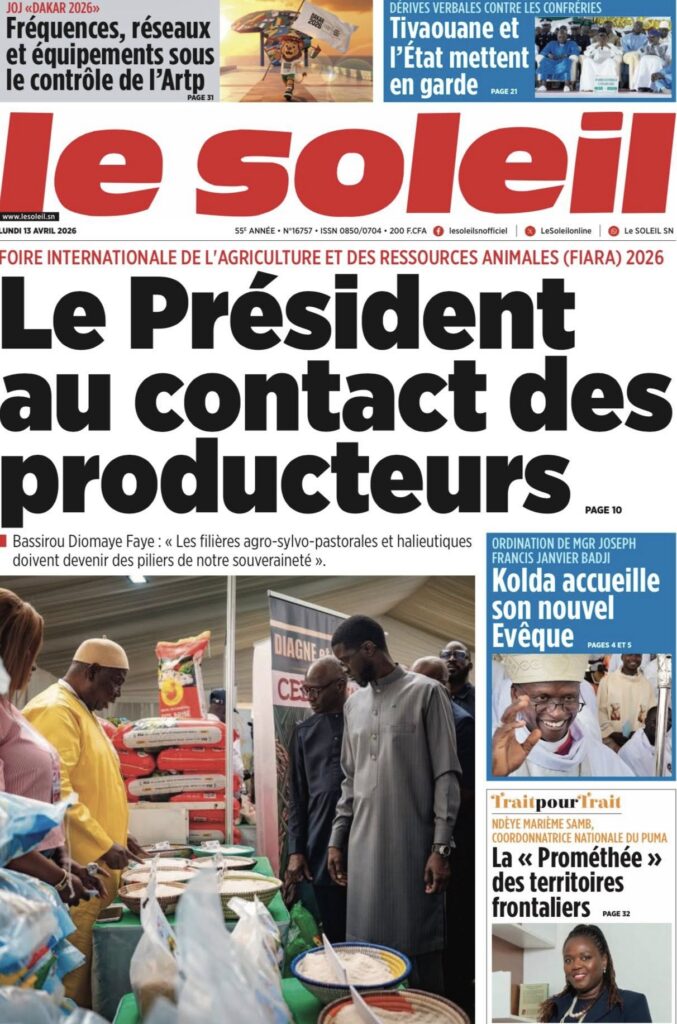 Une des journaux du lundi 13 Avril 2026