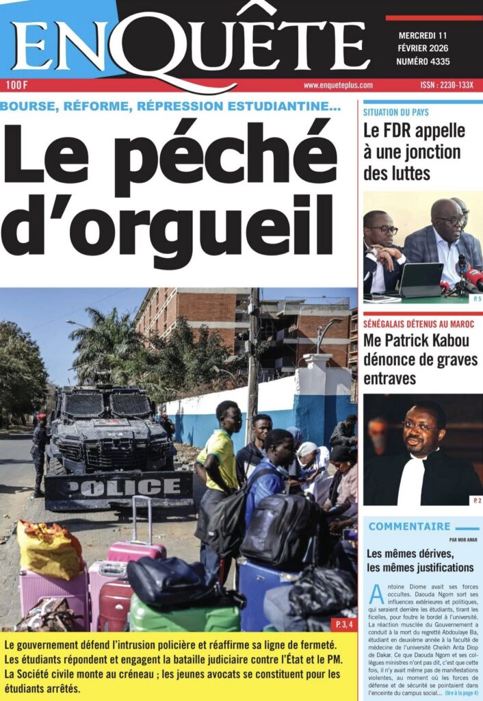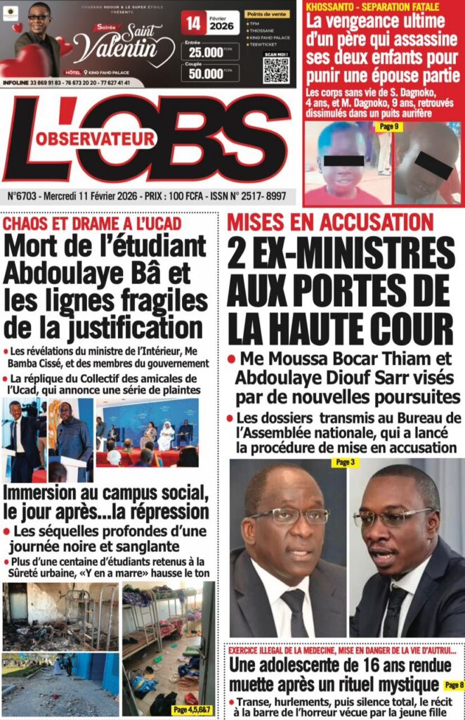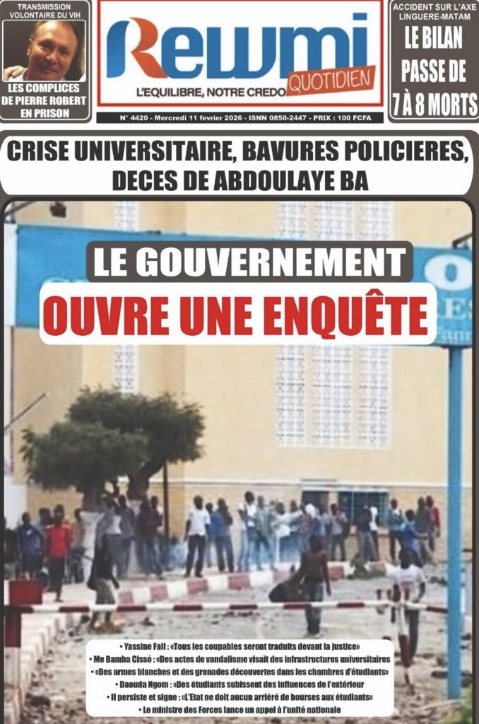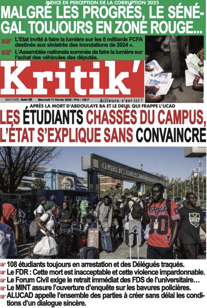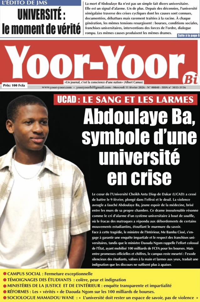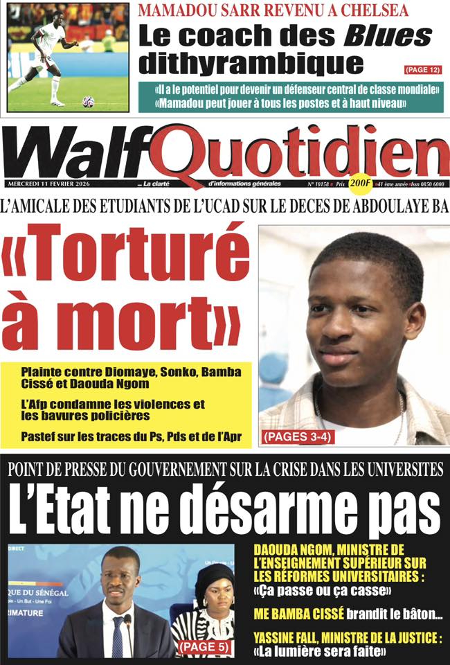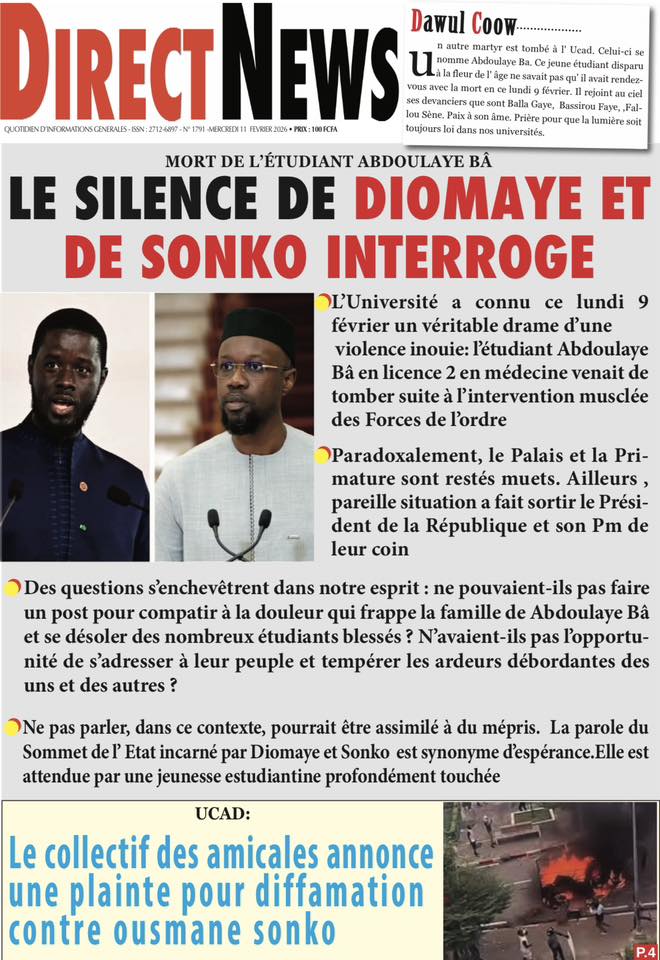Une matinée marquée par une atmosphère de deuil, de colère et de tensions extrêmes. La presse nationale fait bloc autour du drame de l’UCAD, tout en explorant les méandres de faits divers sordides et l’actualité sportive bouillante.