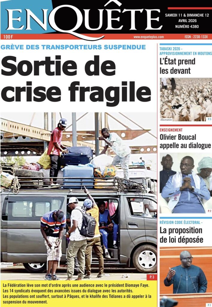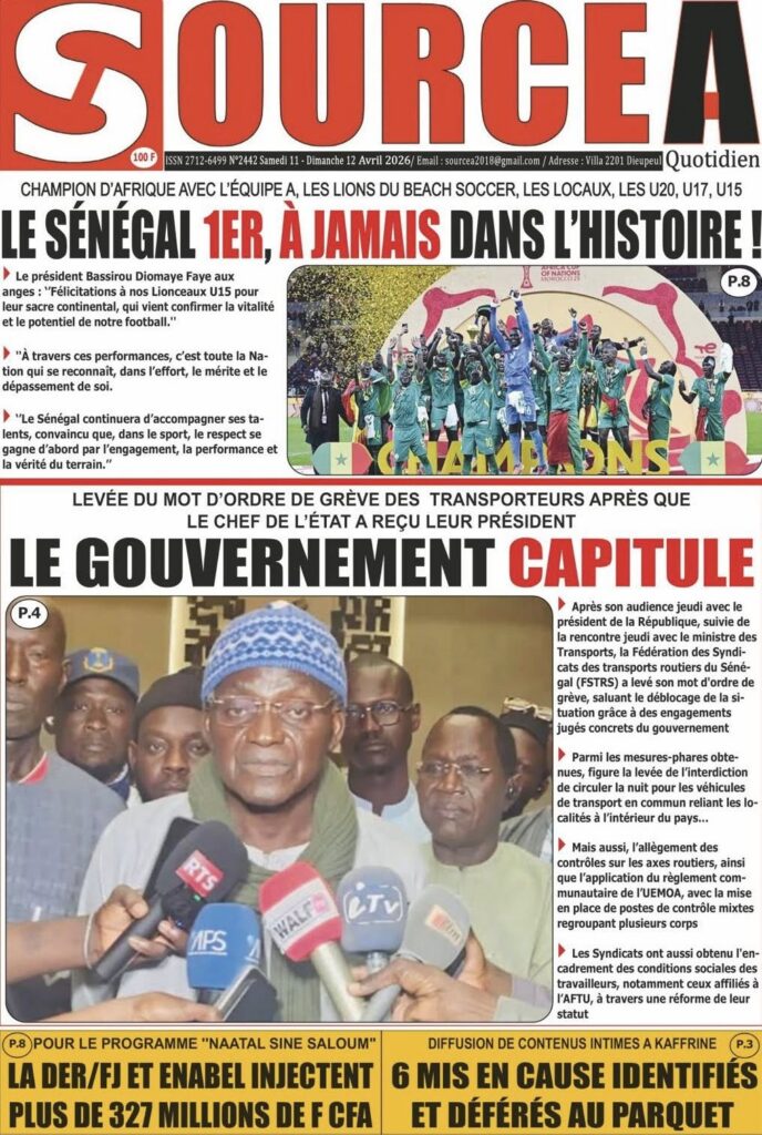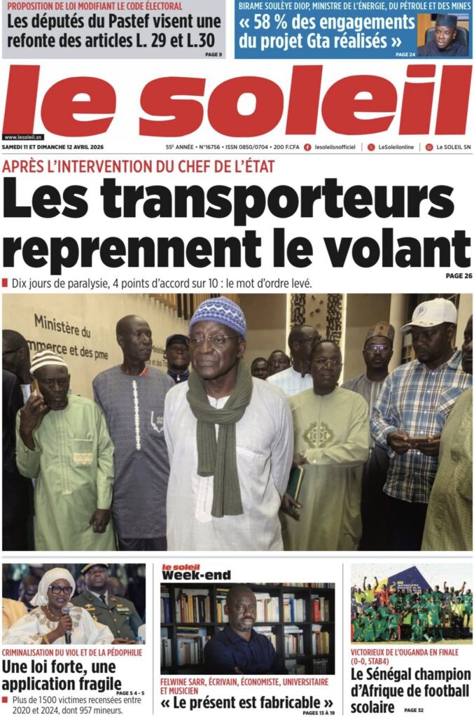 Fin de grève des transporteurs, sacre des Lionceaux U15 en football scolaire africain, dossier tentaculaire de la BR de Keur Massar, loi sur les violences sexuelles, proposition de révision du code électoral et retrait du Mali de la RASD : les journaux sénégalais de ce week-end couvrent une actualité dense, entre crise sociale résolue dans la douleur et turbulences institutionnelles.