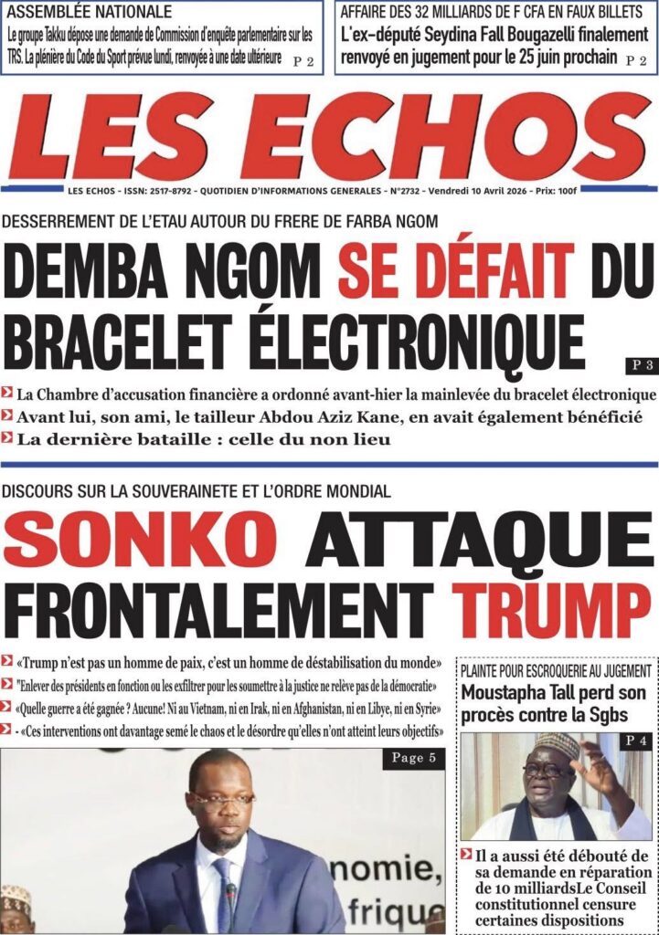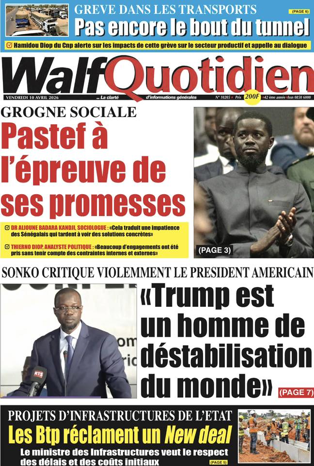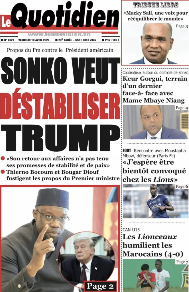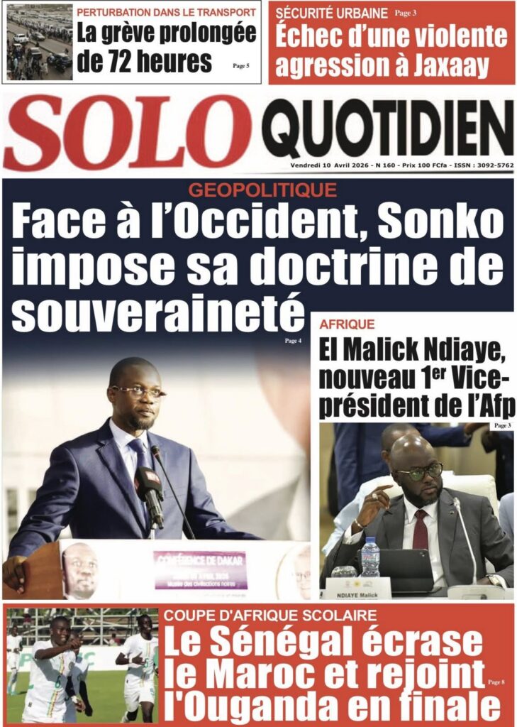 La presse sénégalaise de ce vendredi est dominée par le discours retentissant du Premier ministre Ousmane Sonko au Musée des Civilisations noires, où il a violemment attaqué Donald Trump et défendu une vision souverainiste de l’Afrique. En toile de fond : la grève des transporteurs qui empire et fait monter les prix, la cohabitation turbulente entre Pastef et la coalition Diomaye Président, la crise du BTP et plusieurs faits divers graves. En sport, les Lionceaux U15 écrasent le Maroc 4-0, Aliou Cissé devient sélectionneur de l’Angola, et Ismaïla Sarr brille en Conférence League.