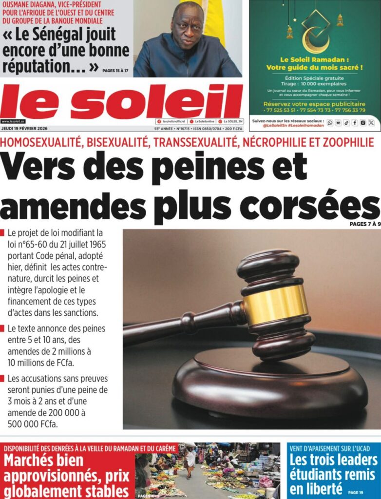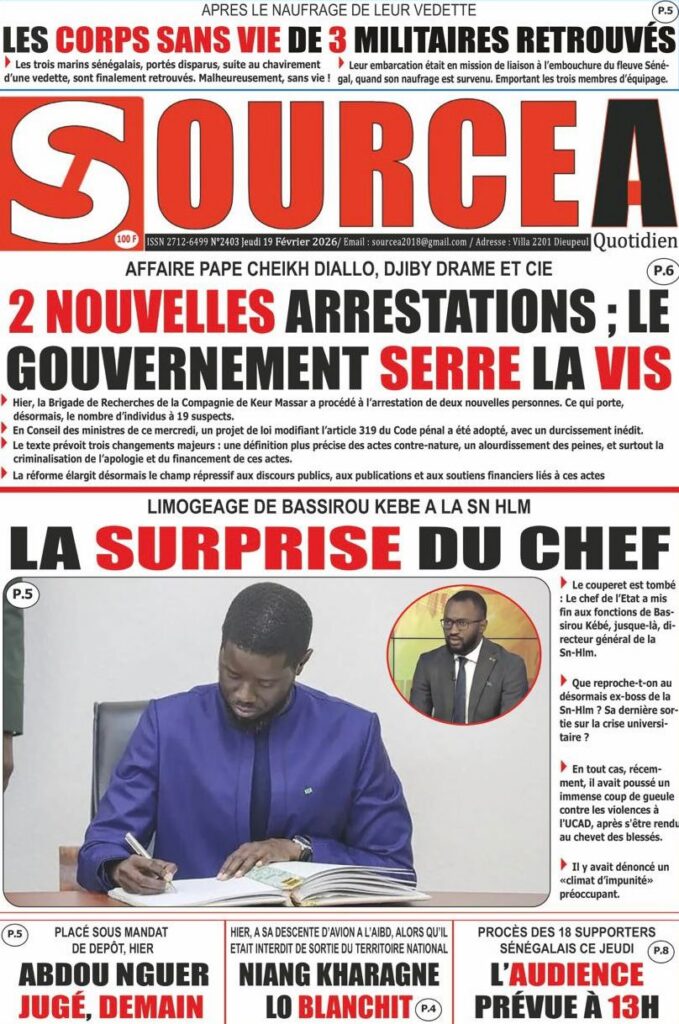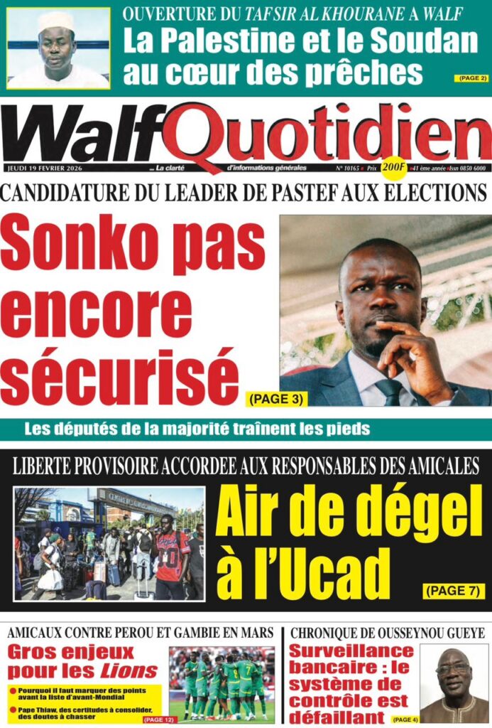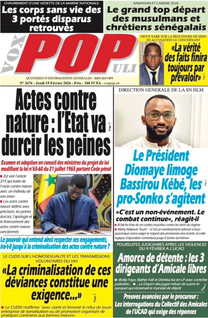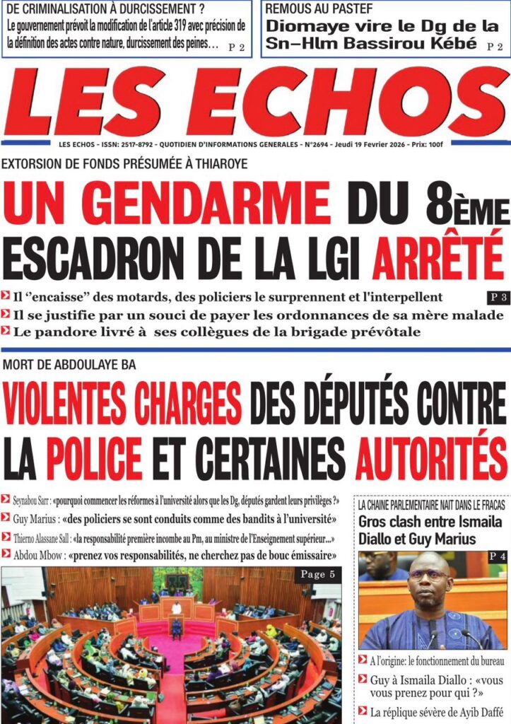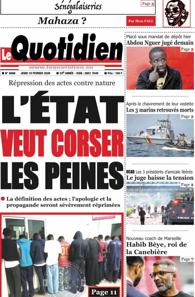 Les quotidiens sénégalais de ce jeudi 19 février 2026 se concentrent sur deux sujets majeurs : le durcissement annoncé du Code pénal avec des peines plus sévères, et la persistance des tensions à l’université. Entre réformes judiciaires, crise académique et actualité sportive, la presse nationale livre une photographie contrastée du pays.