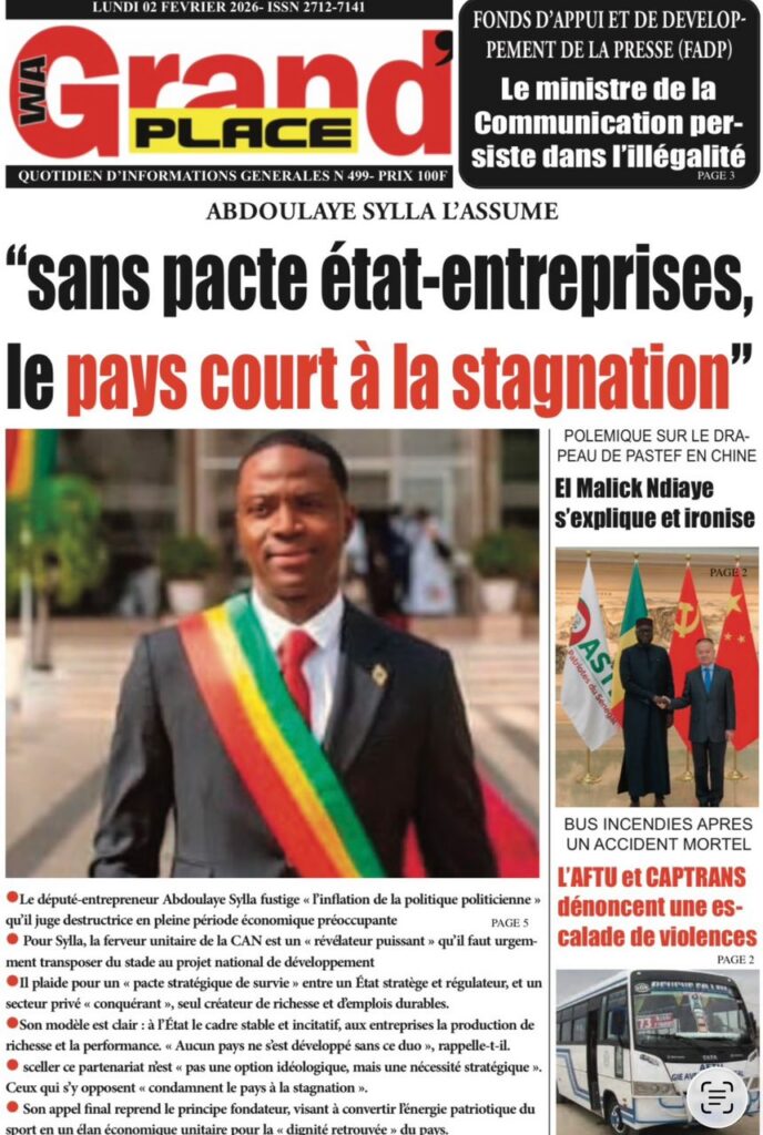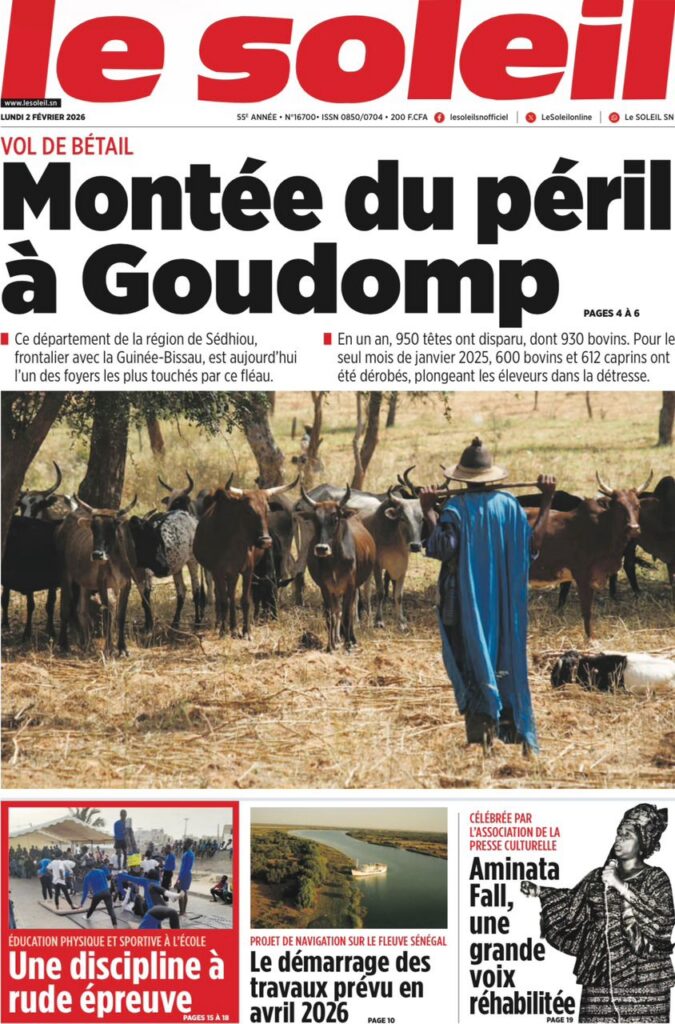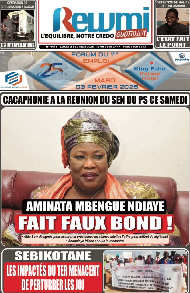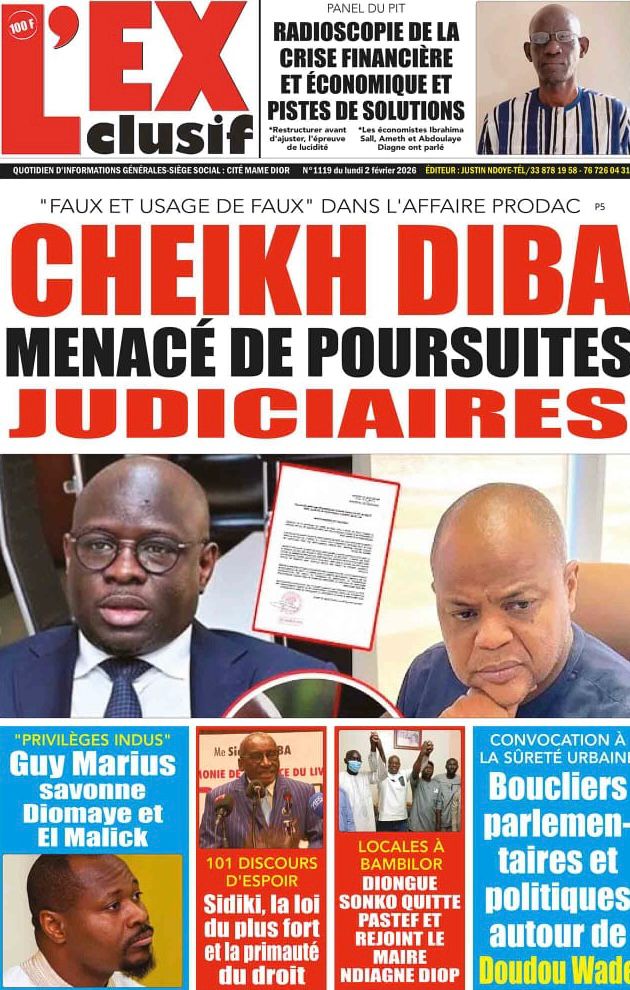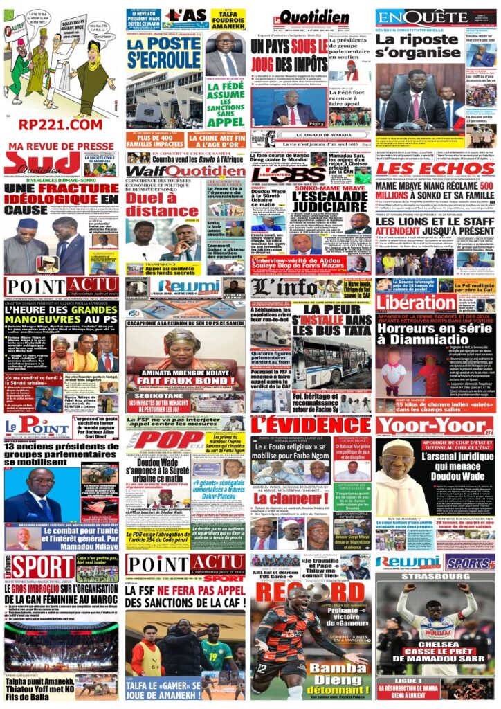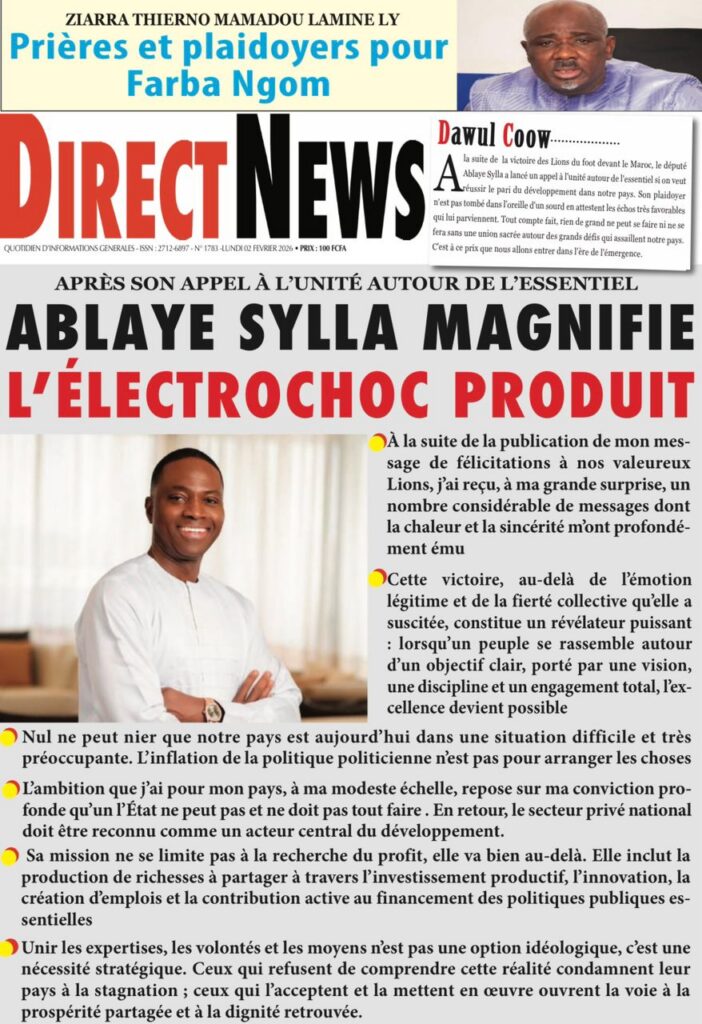 L’actualité nationale de ce lundi 02 février 2026 est dominée par une forte tension politico-judiciaire, marquée par le face-à-face annoncé entre Doudou Wade et la Sûreté urbaine, les débats autour de la révision constitutionnelle, ainsi que des faits divers dramatiques qui continuent de secouer l’opinion publique. Tour d’horizon des principaux titres parus ce matin dans la presse sénégalaise.