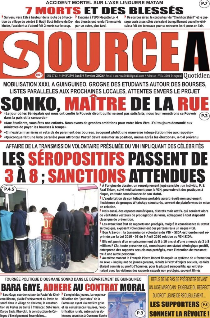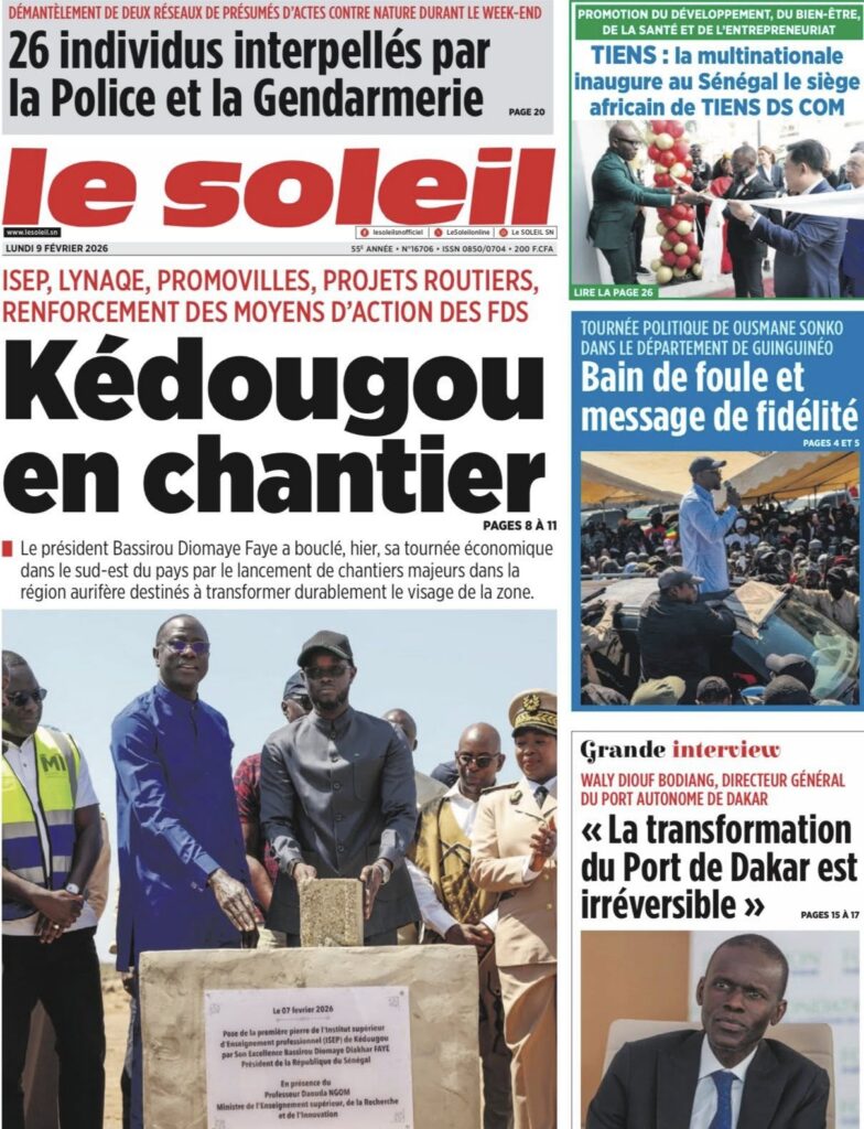 Entre l’affaire judiciaire qui secoue l’opinion, les déplacements stratégiques de l’exécutif à l’intérieur du pays, un grave accident de la route et l’actualité sportive animée, la presse sénégalaise de ce lundi reflète une journée chargée en faits marquants et en fortes émotions.